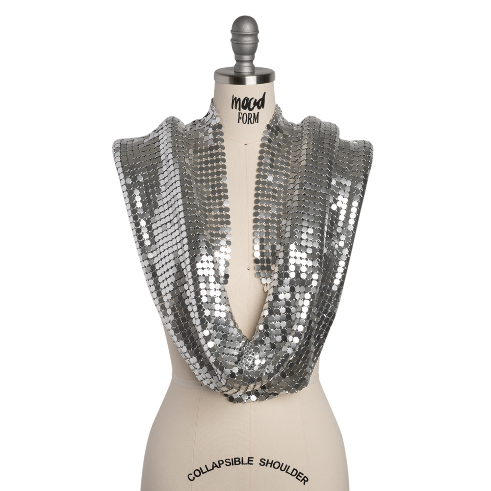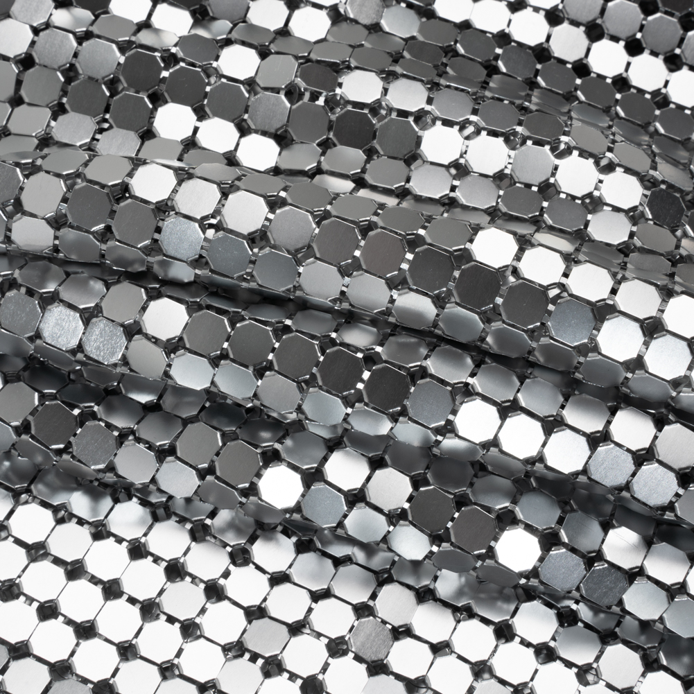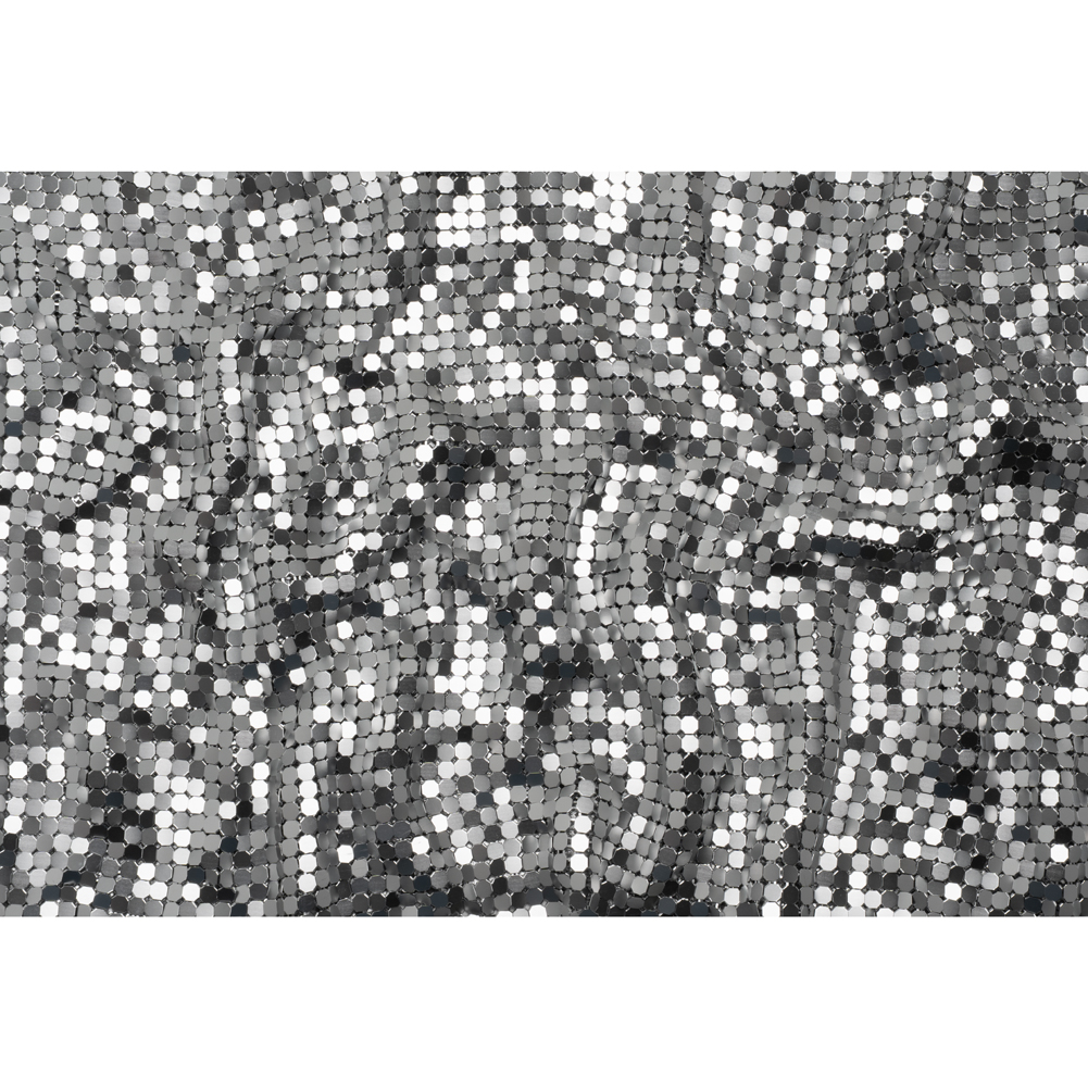 You’ll be a fierce and untouchable force in this Silver 8mm Tubular Aluminum Chainmail Fabric—featuring a fluid, slightly structured drape and cool, sleek hand.Suggested Projects: Dresses, Tops, Skirts, BagsContent: 100% AluminumStretch: NoneOpacity: SheerGuard your kingdom in style with this silver 8mm aluminum chainmail, the ultimate armor for the modern-day warrior. From the first chainmail dress in the 1960s to Paris Hilton’s iconic Y2K look, metallic chainmail fabrics have always made a bold statement—and now they're making a powerful comeback. Beloved by high-end designers and worn by red carpet stars, this fabric seamlessly combines opulence with an edgy, rebellious flair. With a cool, sleek hand and a slightly structured yet fluid drape, this chainmail is perfect for crafting couture dresses, avant-garde armor-inspired creations, statement bags, daring tops, and flirty mini-skirts. Wear it sheer for a daring look or add a slip for full opacity—either way, all eyes will be on you.As it’s a unique fabric, here’s some quick how-to-sew tips that’ll help ensure a seamless experience:Hand sew with invisible thread.Use small pliers to take the fabric apart/take pieces off.Please note that this fabric is sold as a tubular piece of chainmail. It is 15.75 inches long and measures about 29 inches wide when laid flat, for a total circumference of 59 inches.