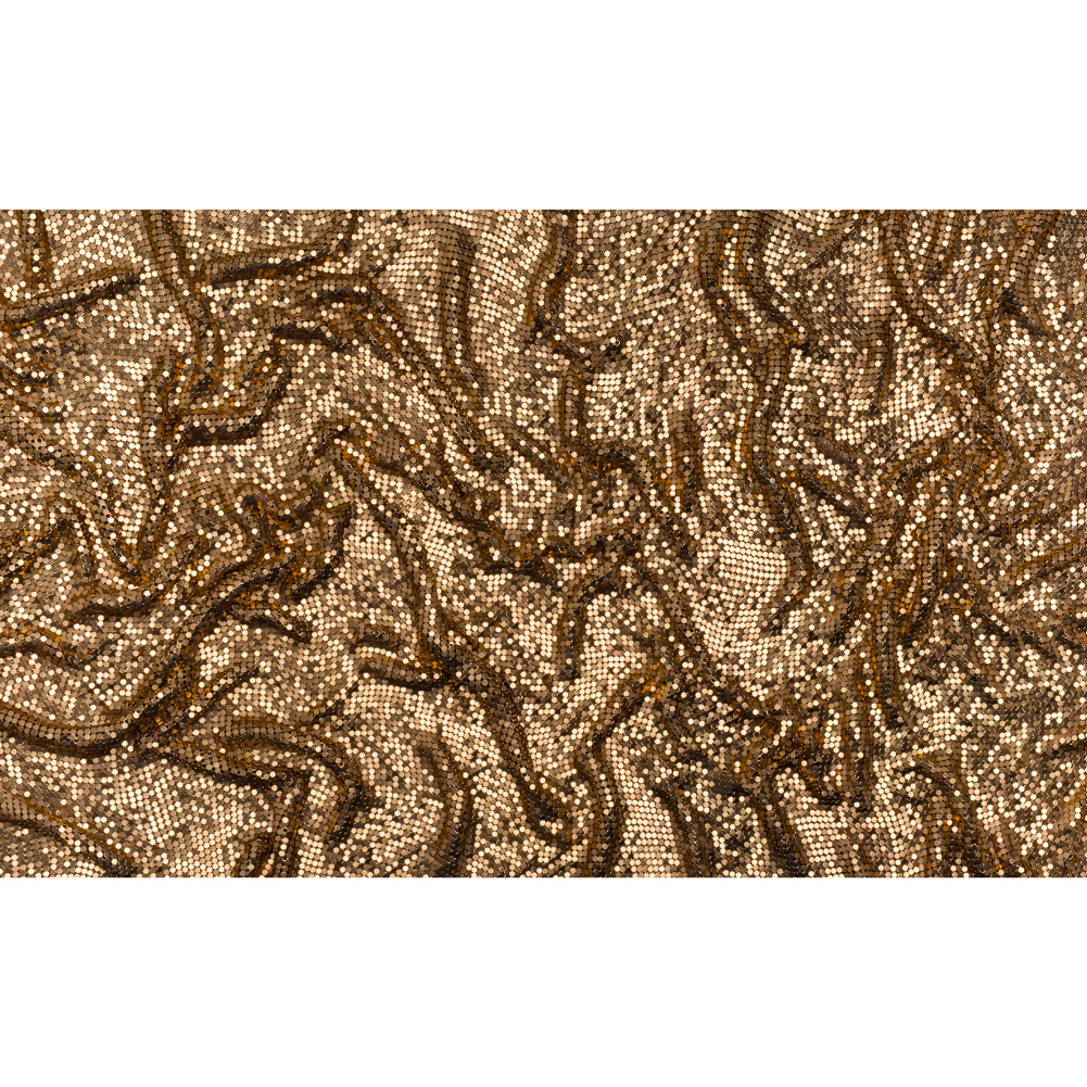 Party alongside Gatsby in this Gilded Bronze 3mm Tubular Aluminum Chainmail Fabric Panel—featuring a fluid drape and cool, sleek hand.