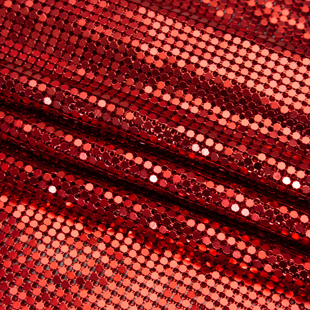 Doors will always open—no red tape in sight—when you wear this Red 3mm Tubular Aluminum Chainmail Fabric Panel, featuring a fluid drape and cool, sleek hand.