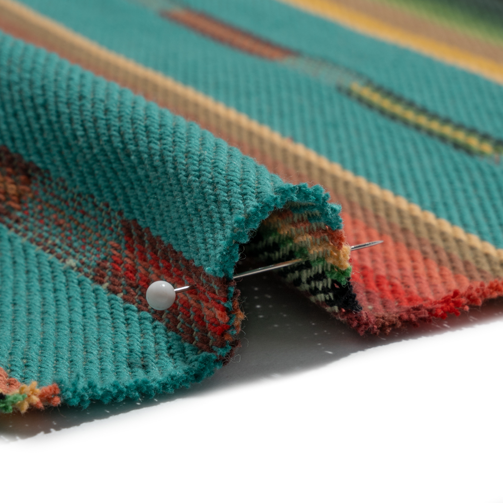 Saturated and bold, this Arizona Turquoise, Red and Green Striped Cotton Twill is deeply rooted in colors created naturally by Mother Earth.