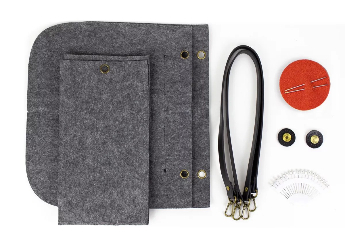 -Pre-cut felt bag, with pre-cut eyelets and internal zipper pocket