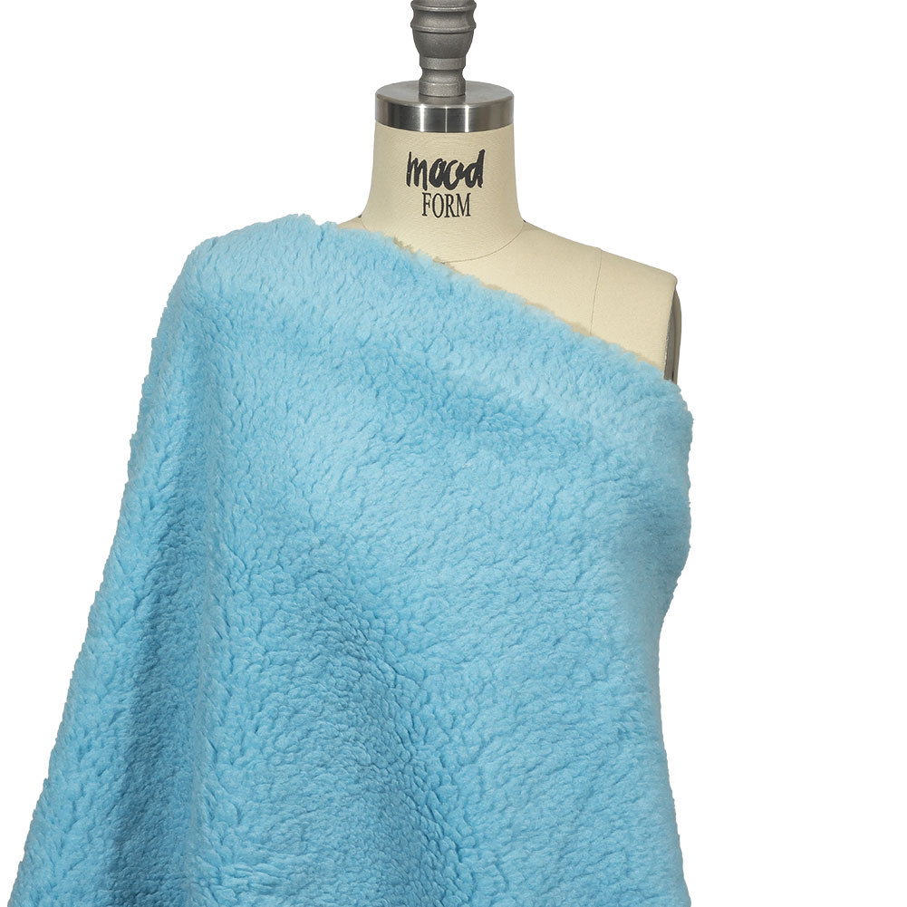 Make something soft and stunning with this Italian Baby Blue Faux Shearling with Knit Backing by Balenciaga! A cozy, plush faux shearling is dyed a baby blue, on a knit backing with a whopping 65% widthwise stretch.