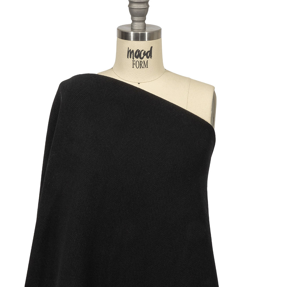 Delight in a textural fabric you'll never want to stop wearing in this Italian Black Herringbone Brushed Virgin Wool Coating by Balenciaga! The simplistic black color allows two must-have textures, a tactile herringbone weave and brushed finish, to shine. Structured, heavy, and pliable, we imagine fitted jackets, oversized coats, and any manner of dramatic capes. Opaque, add a lining for a finished feel on tailored projects.