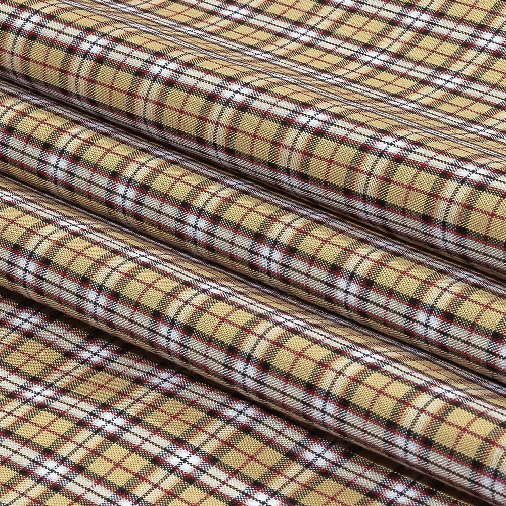 Much like the best candy, this Italian Candied Ginger, Black and Haute Red Plaid Cotton Poplin by Balenciaga is a real treat! A beige-tan ground plays host to a classic black, red, and white plaid. Cool and smooth in hand with a crisp, lightweight drape, design button-down shirts, eternally stylish shirtdresses, or breezy blouses. While slightly translucent, a lining is not necessary for most topweight applications.