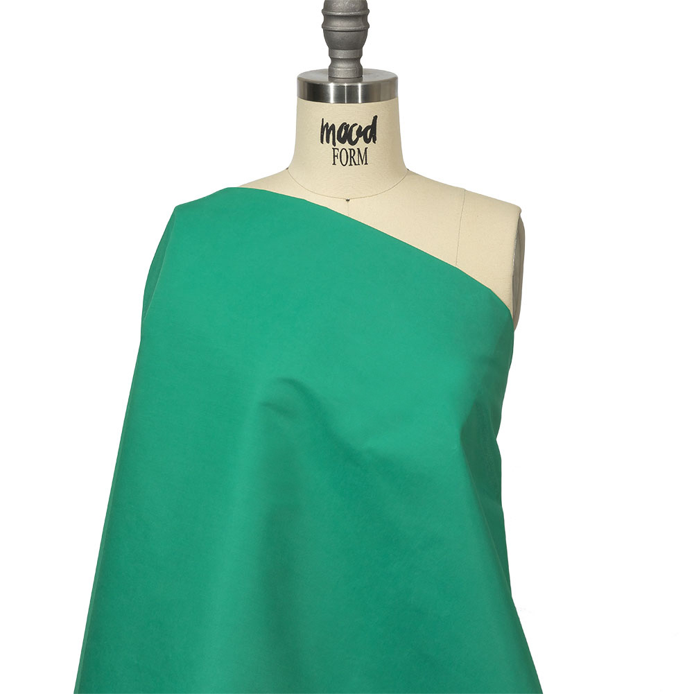 Dream of clear oceans and island getaways with this Italian Carribean Blue Cotton and Nylon Twill, courtesy of Balenciaga! Cotton and nylon fibers combine in a durable twill weave, resulting in a smooth teal green face with a subtle sheen.