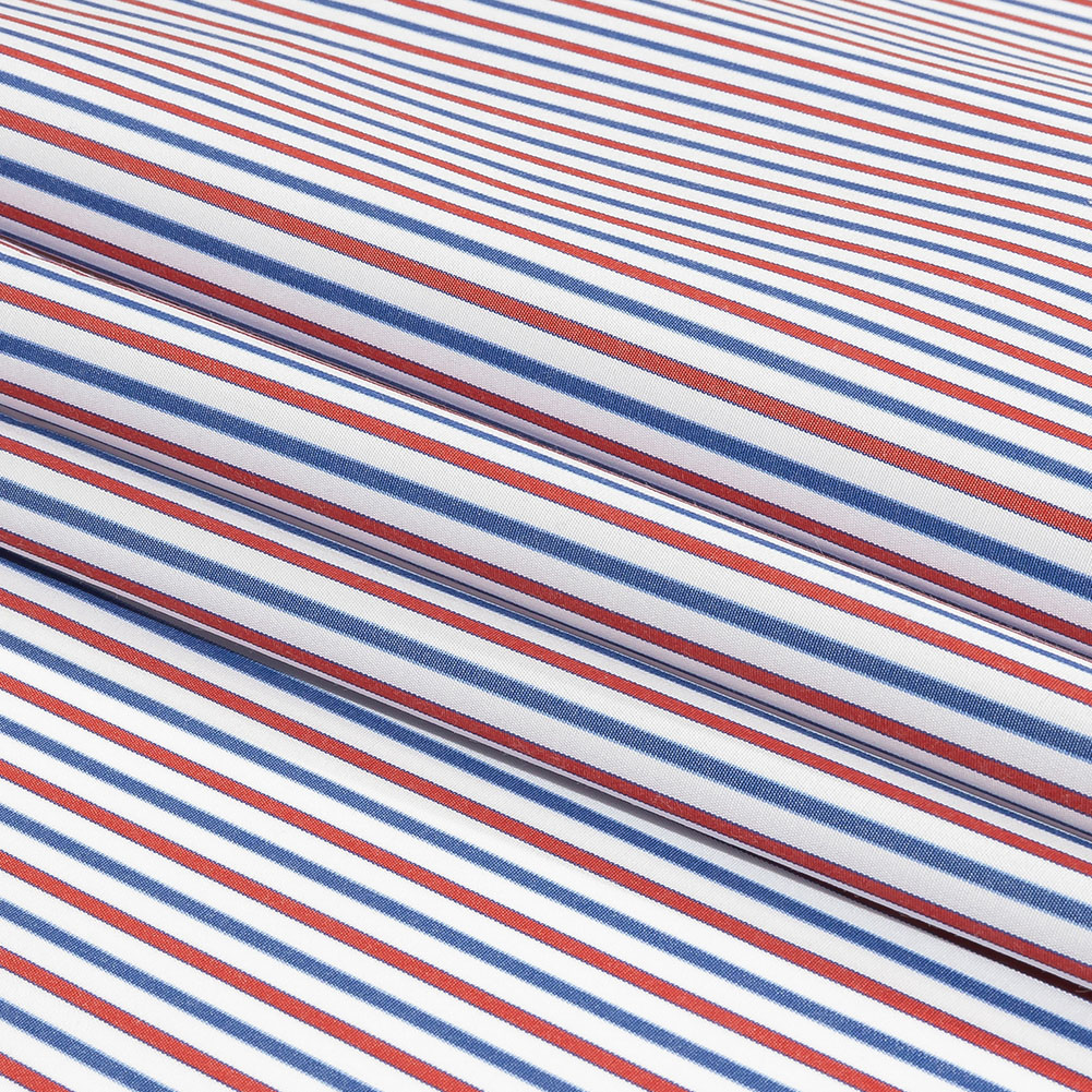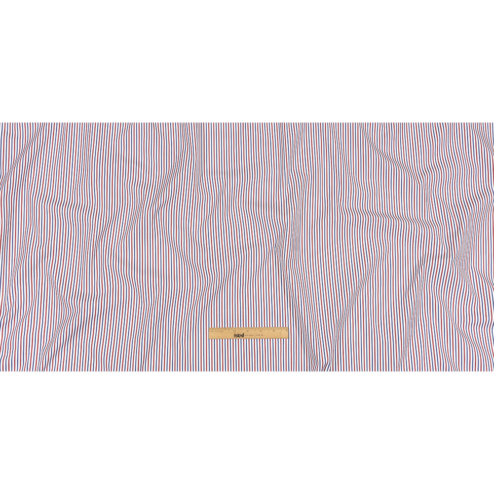 Pick a parade of fun with this Italian Holly Berry, Blue and White Striped Cotton Poplin from Balenciaga! Brilliant blue and red stripes cross a white ground with a cool, crisp hand.