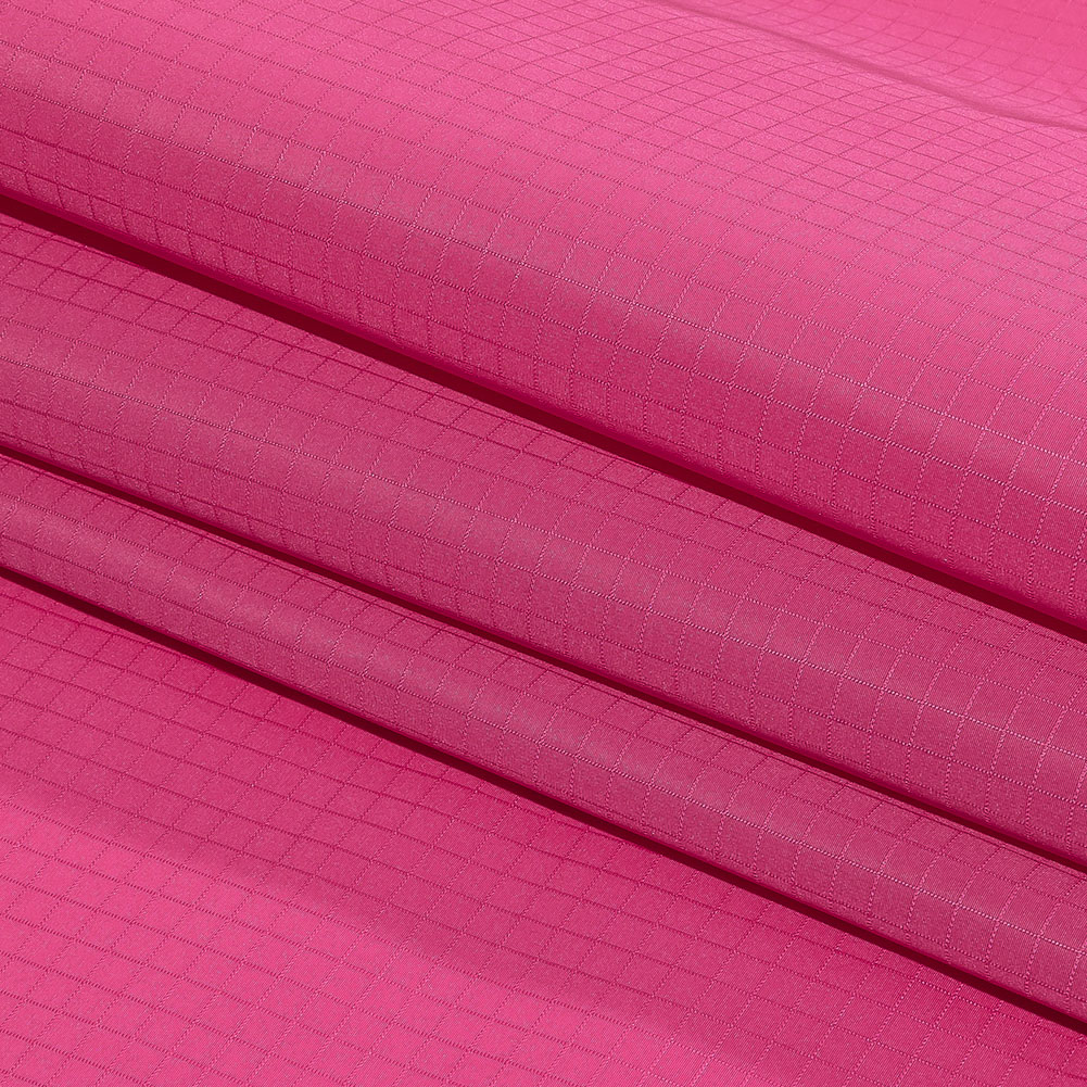 Between sweet and sassy, there you’ll find this trendy Italian Hot Pink Polyester Ripstop by Balenciaga! On the face, a satin-like sheen and smooth feel are enhanced by a tonal, hot pink square weave.