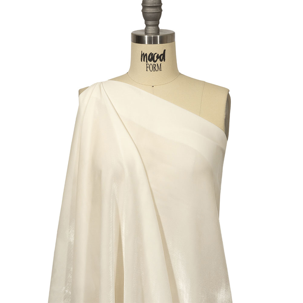 Invest in yourself—and lavish luxury—with this Italian Jet Stream Viscose and Silk Velvet by Balenciaga! A short velvet pile is plush and soft in hand, with the ivory color dancing in the light thanks to a luminous sheen and fluid, bouncy drape. Make vintage-inspired cocoon coats, slinky evening gowns, or wintery blouses and crop tops. Somewhat translucent, consider a lining for additional structure and opacity where needed.Please note: This fabric is 36" wide.