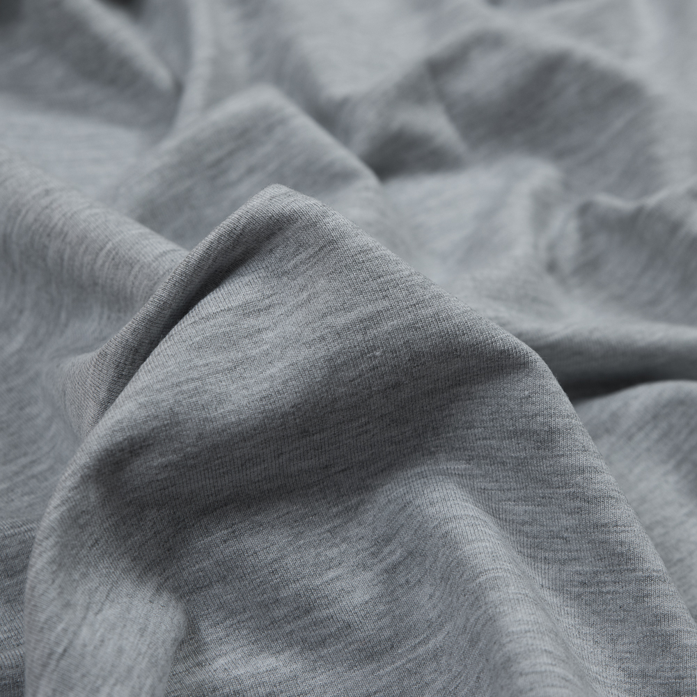 Weekends just got a whole lot more stylish with this Light Gray Bamboo Stretch French Terry. Boasting an extremely soft hand, this knit is bound to become your new go-to piece. Thin and lightweight for a terry, it falls and moves with ease into relaxed-fit silhouettes. Create everything from pullovers to zip-up hoodies and lounge pants for any season. Boasting a 4-way stretch, play with body-forming silhouettes as well! Note that it becomes slightly translucent when stretched.MoodEarth Verified: Made with fibers grown without the use of harmful pesticides, insecticides, or fertilizers, this organic fabric reduces the chemical harm from textile production while maintaining high quality. For more information on Mood's sustainability initiatives, check out MoodEarth here.