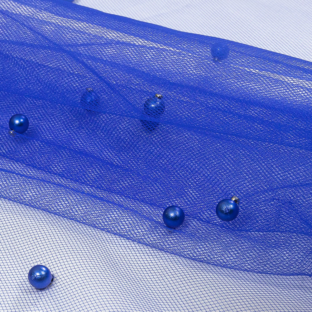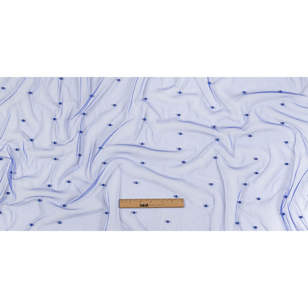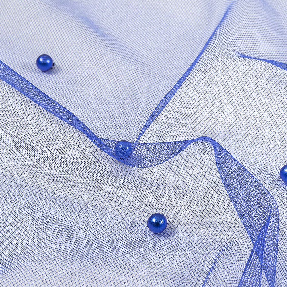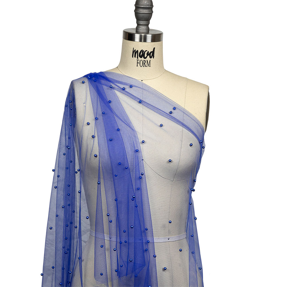 Electrify your next look with this Cobalt Beaded Tulle! Featuring a fluid drape and a soft, tactile hand.Suggested Projects: Veils, Necklines, Overlays for Dresses, AccessoriesContent: 100% NylonStretch: Slight Mechanical GiveOpacity: SheerVivid blue pearl-like beads evenly dot a tulle backing of the same color. A fluid drape paired with a soft and lightly textured hand makes it ideal for accessories, veils, dress overlays, and decorated illusion necklines! Upgraded tutus are also an option. Sheer in construction, a lining is recommended for where opacity is desired.
