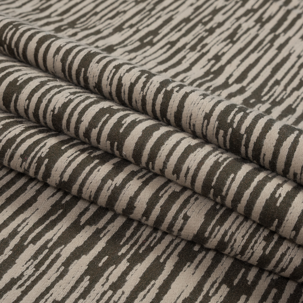 Beige and Olive Striated Wool Jacquard