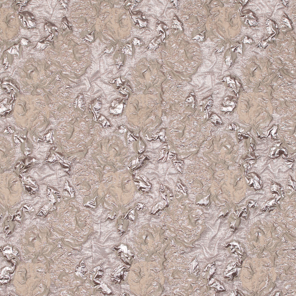 Our Beige and Rose Gold Luxury Floral Metallic Brocade is as bold and couture as brocades come. Radiant metallic roses seem to twirl and twinkle in this spellbinding floral. Thin and lightweight, its crisp hand and billowy drape make it ideal for absolutely stunning cocktail dresses and evening gowns. This collection comes in several luminous colorways accented by either silver or gold to make sure you're the star of the night. Translucent, be sure to add a lining for more opacity or comfort.