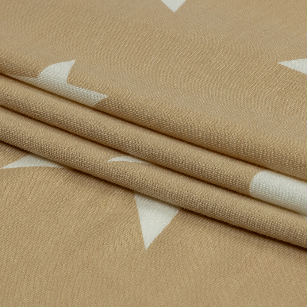 Beige and Star White Stars Stretch Polyester and Rayon French Terry