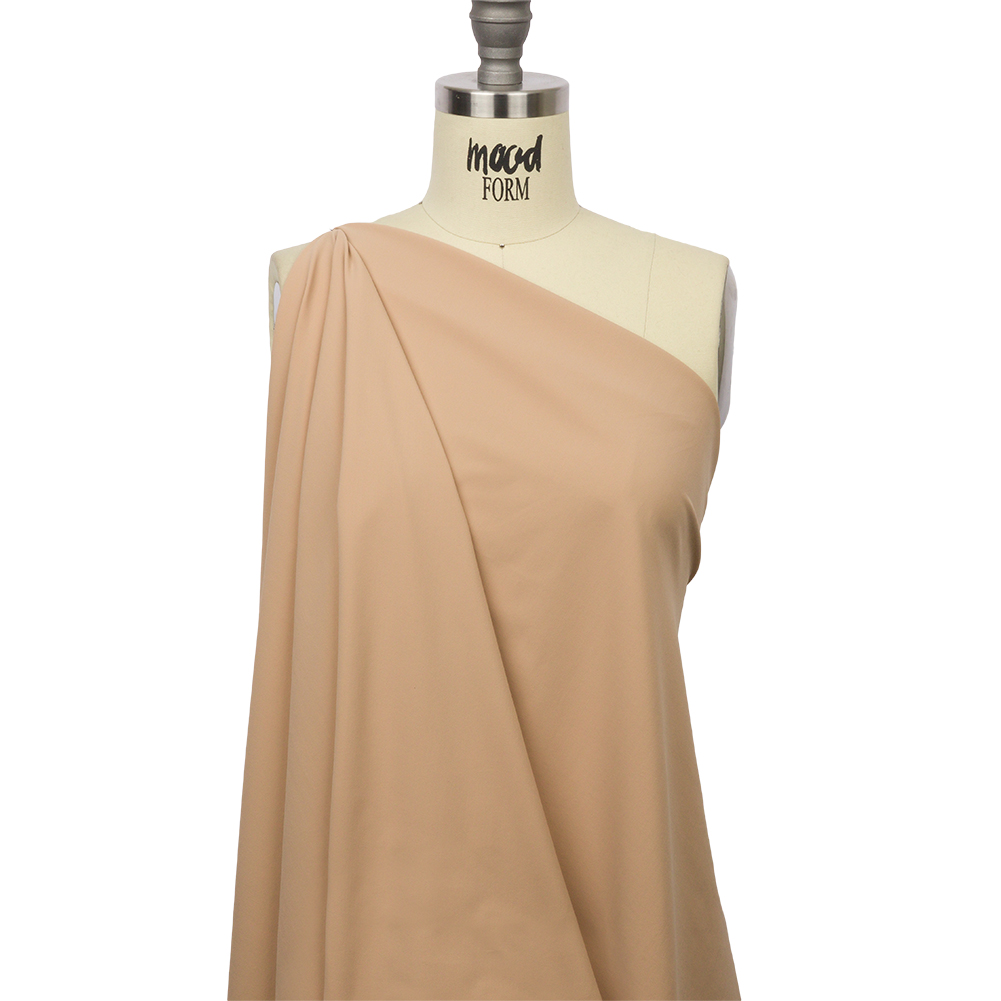 Bare with us as we introduce the Beige Stretch Nylon Knit: a nude must-have. This versatile fabric is smooth, malleable, and lightweight, featuring a 30% all-way stretch. Design one-piece bathing suits, nude bralettes, crop tops, and so much more! Completely opaque, a lining is not necessary.