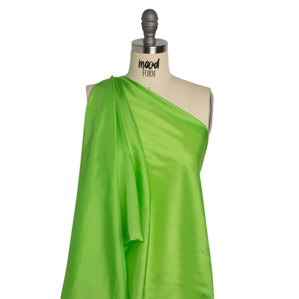 Neon lights shine from this Lime Green Bemberg Lining. Featuring a brilliant luster, fluid drape, and silky smooth hand.Suggested Projects: Linings for Outerwear, Blazers, Dresses, SkirtsContent: 100% Bemberg ViscoseStretch: NoneOpacity: TranslucentFinish your garment with the sleek feel and bold color of this lime green lining! Along with its luxurious feel, Bemberg is also known for its supreme durability and breathability, making it one of the top fibers used to line the inside of high-end garments. Thin and lightweight, it has a fluid drape to keep your pieces flowing easily. Use its fine, silky smooth hand and luminous sheen to add a luxurious finish to your fall and winter outerwear, blazers, dresses, and more. Note that it is translucent.