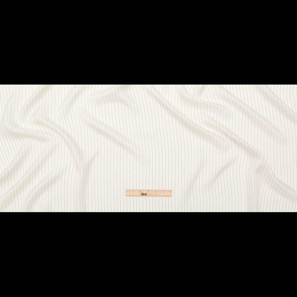 Write stories across the lines of this Whisper White and Black Double Pinstripes Bemberg Lining, featuring a silky smooth hand and fluid drape.Suggested Projects: Linings for Outerwear, Blazers, Dresses, SkirtsContent: 100% Bemberg ViscoseStretch: NoneOpacity: TranslucentThin black pinstripes run across a whisper white background. Along with its luxurious feel, bemberg is also known for its supreme durability and breathability, making it one of the top fibers used to line the inside of high-end garments. Featuring elegant double broken pinstripes against a sleek white background, this fabric has a fluid drape to keep your pieces flowing easily. Use its fine, silky smooth hand and luminous sheen to add a luxurious finish to your fall and winter outerwear, blazers, dresses, and more. Note that it is translucent.