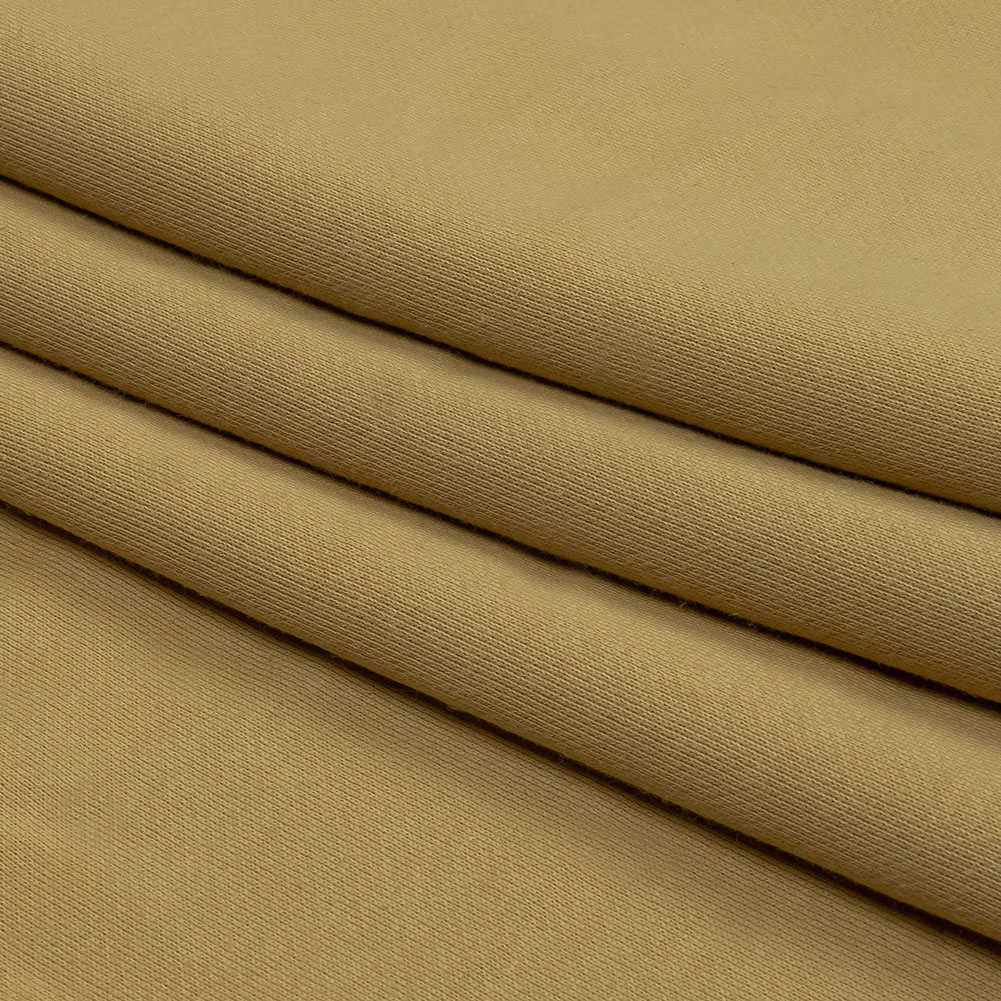 Layer your outfit with this angelic, neutral-toned Biscotti Cotton French Terry! Soft and crisp in hand, a tasty yellow-beige coloration covers both the smooth face and the loopy, tactile reverse. Of a medium weight, the knit structure gives it a weftwise stretch of about 25% and a flexible drape. Use it to create cozy sweaters, hoodies, dresses, skirts, or casual loungewear! Opaque, a lining is not necessary for most applications.