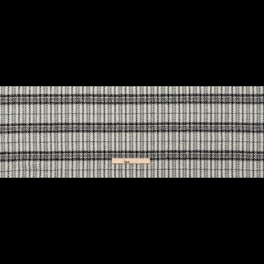 Black and Gray Plaid Polyester and Wool Tweed