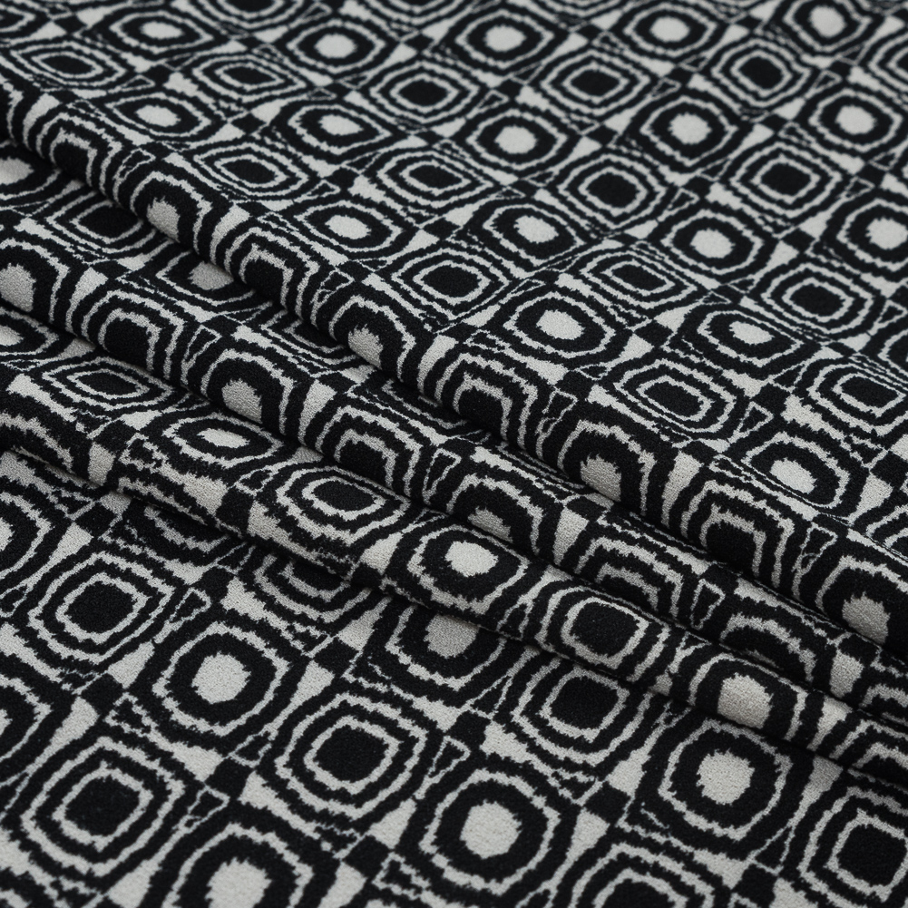 Black and Ivory Geometric Polyester Crepe