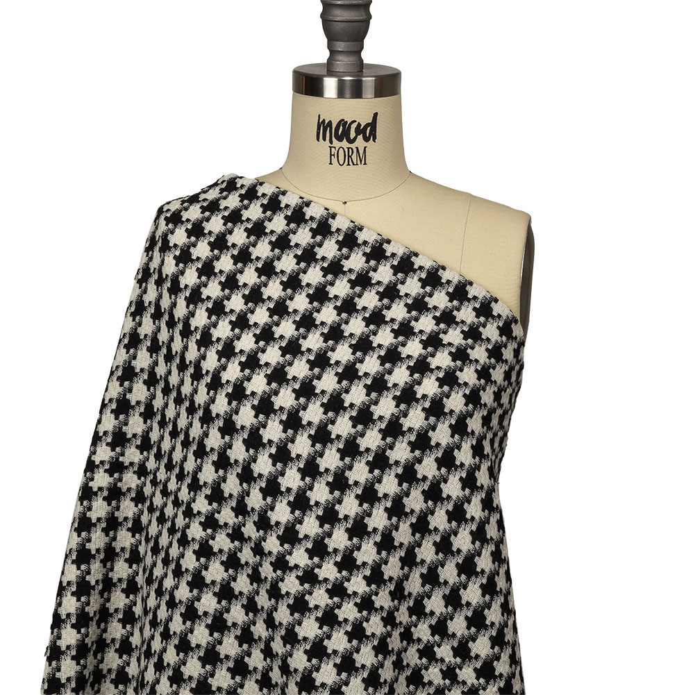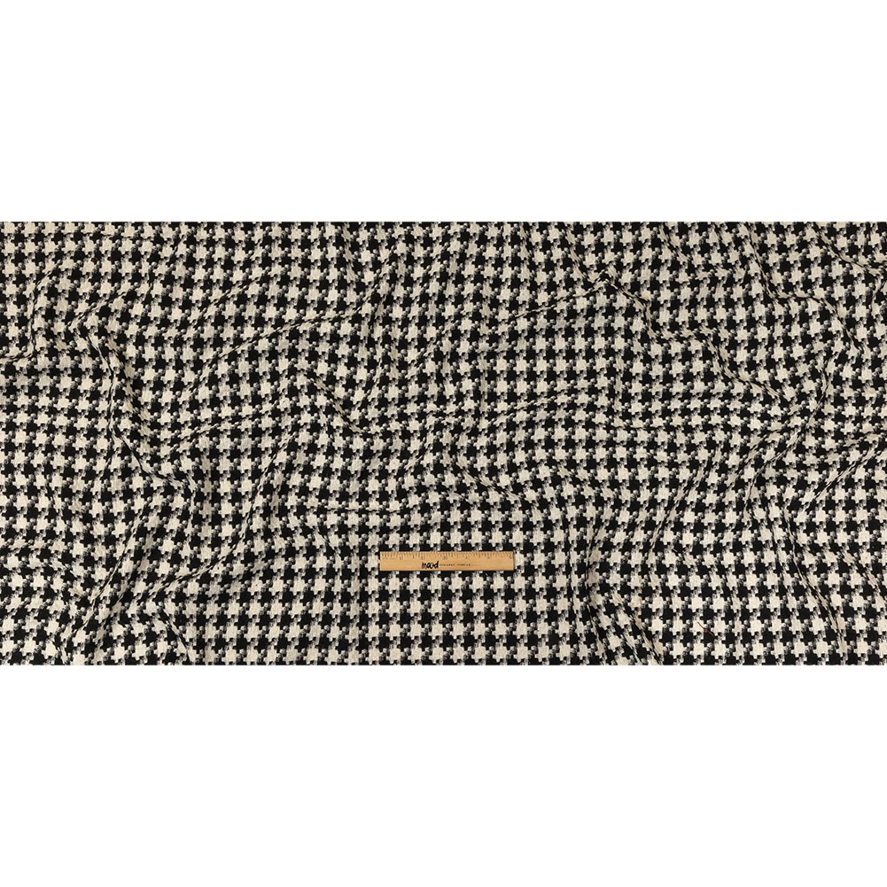 Black and Ivory Houndstooth Polyester Basketweave Tweed