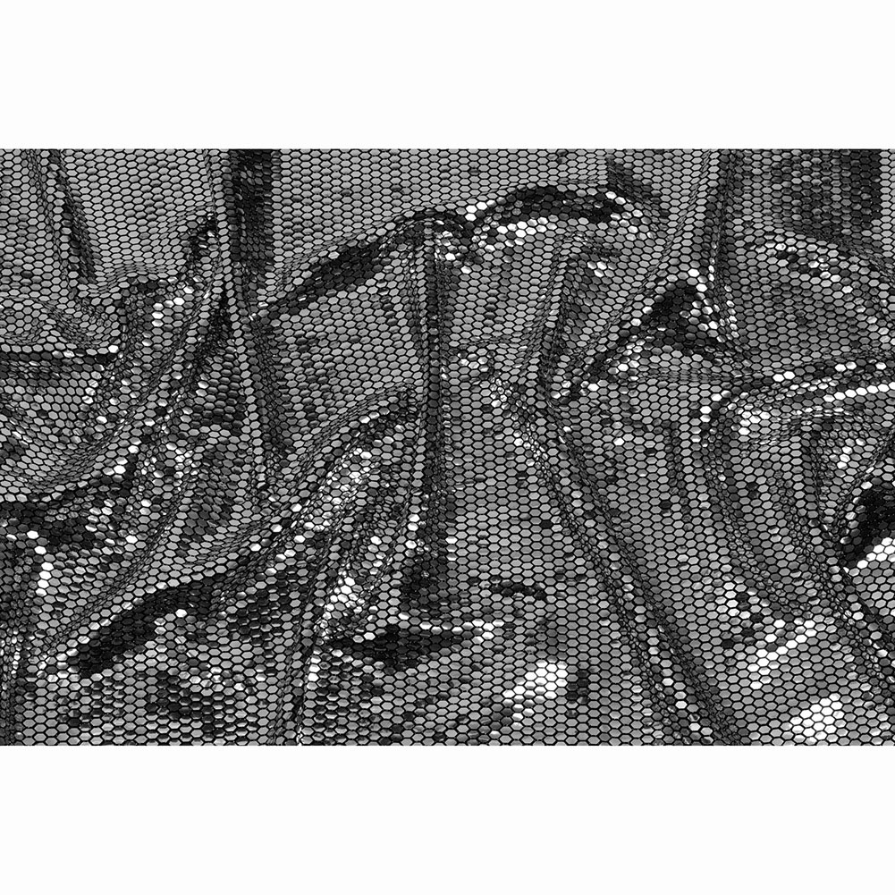 Make some fun memories in this Black and Silver Hexagons Foiled Stretch Nylon Knit! On a black nylon knit, shiny silver hexagons flash like strobe lights. The back is soft and sleek which, paired with the 10% all-way stretch, promotes ultimate comfort as you jump and jive through the night. Exciting disco pants, bodycon dresses, and crop tops are waiting to be created—step out of your comfort zone and choose the bold route for your next night out!