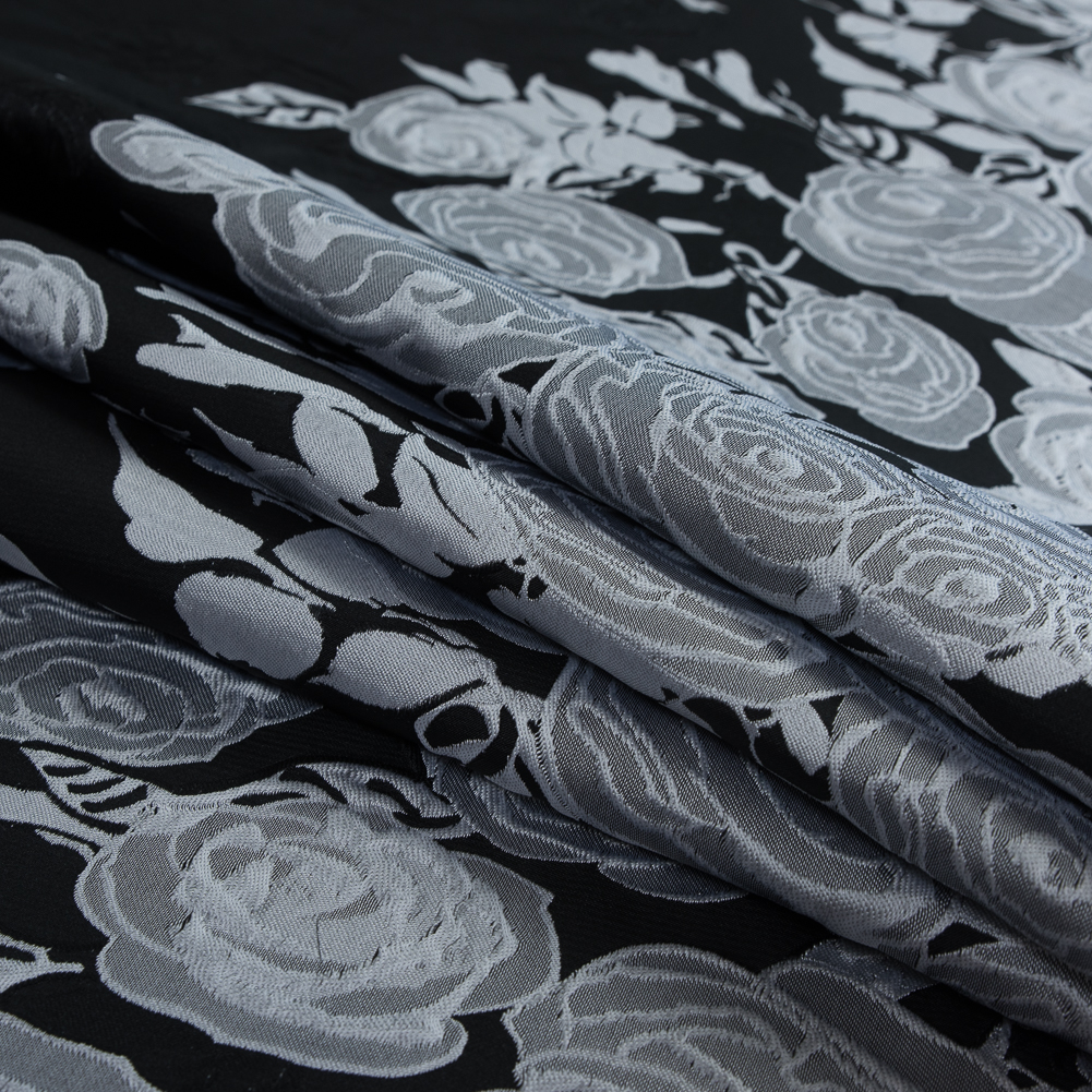 This Black and Silver Rose Jacquard Panel is a modern take on a floral.