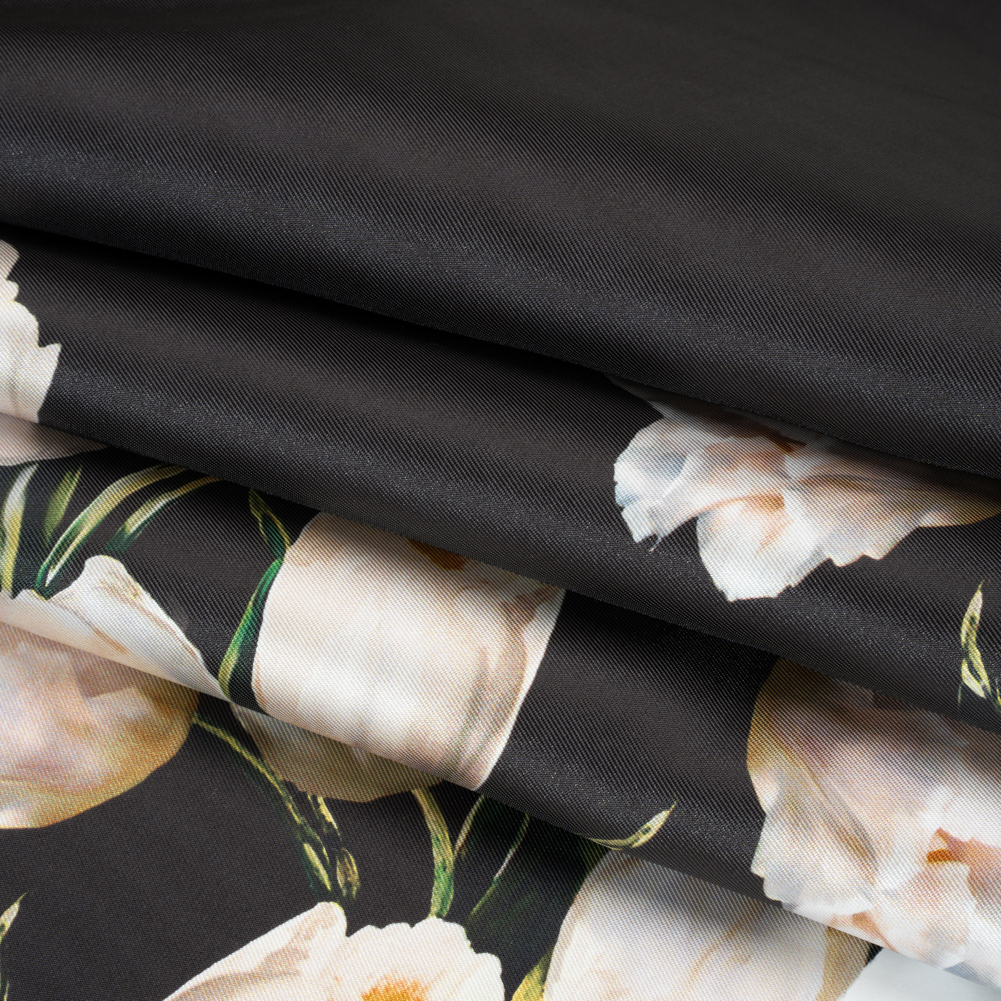 Black and Whisper White Digitally Printed Flowers on a Premium Mikado/Twill
