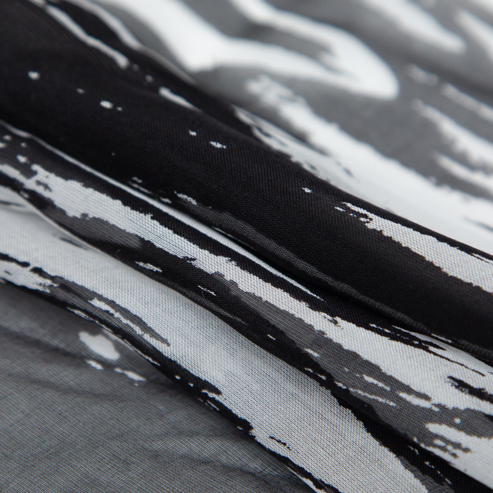 Black and White Abstract Silk Chiffon