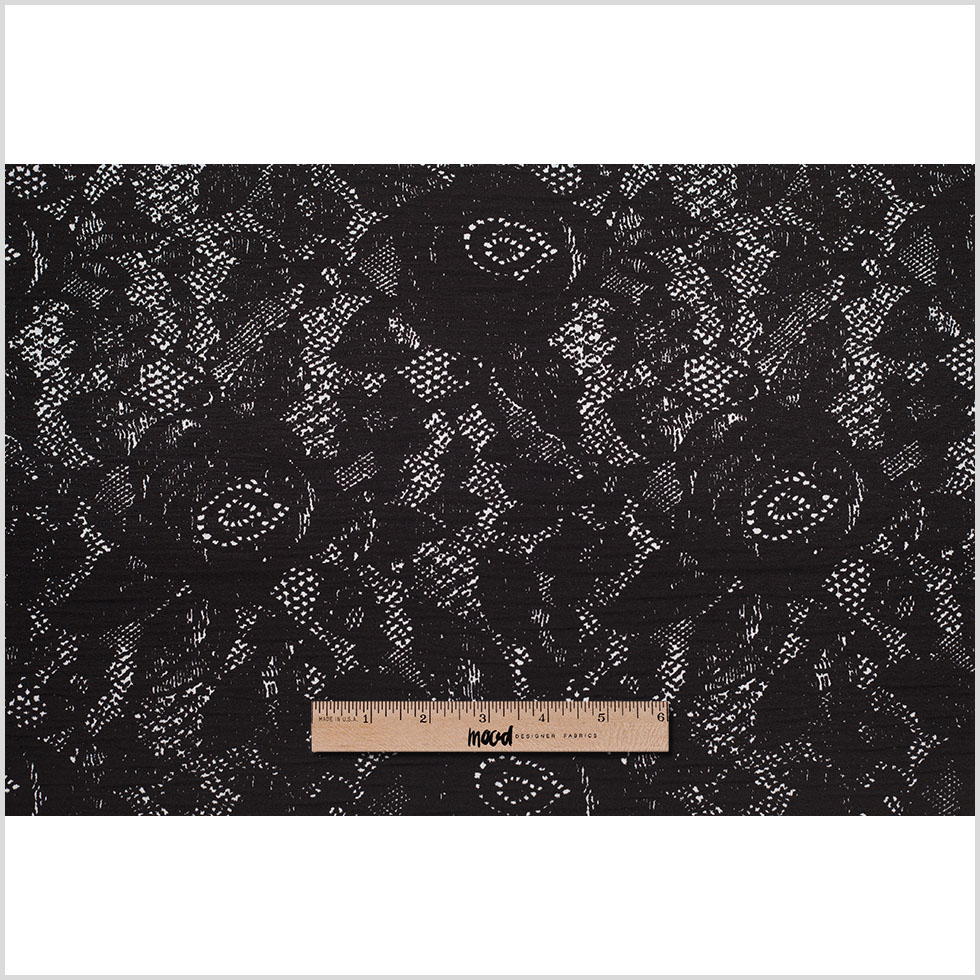 Polyester Stretch Mesh Print – Black and Ivory Floral – Designer DeadstockPolyester Stretch Mesh Print - Black and Ivory Floral - Designer Deadstock