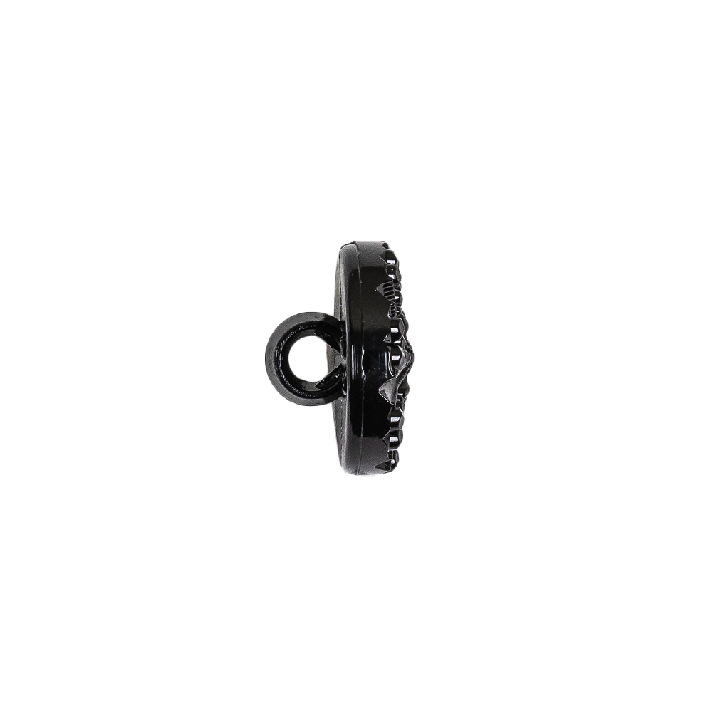 Mood carries an expansive array of plastic buttons in all shapes, sizes, and colors! Here, in particular, we have a grouping of round Black Bevel Cut Shank Back Plastic Buttons featuring a glittering pinwheel bevel-cut design radiating from a concave point, along with a flat shank backing for easy application.This specific button is size 20L/12.5mm with a gauge of 4.22mm, and is also carried in sizes 30L/19mm, 36L/23mm, and 44L/28mm as well as one additional colorway.Great for just about any application—from blouses to trousers, to blazers and coats, to pillow accents and handbags—a browse through our plastic button category guarantees you will find what you're looking for! WARNING: Cancer and Reproductive Harm - www.P65Warnings.ca.gov.