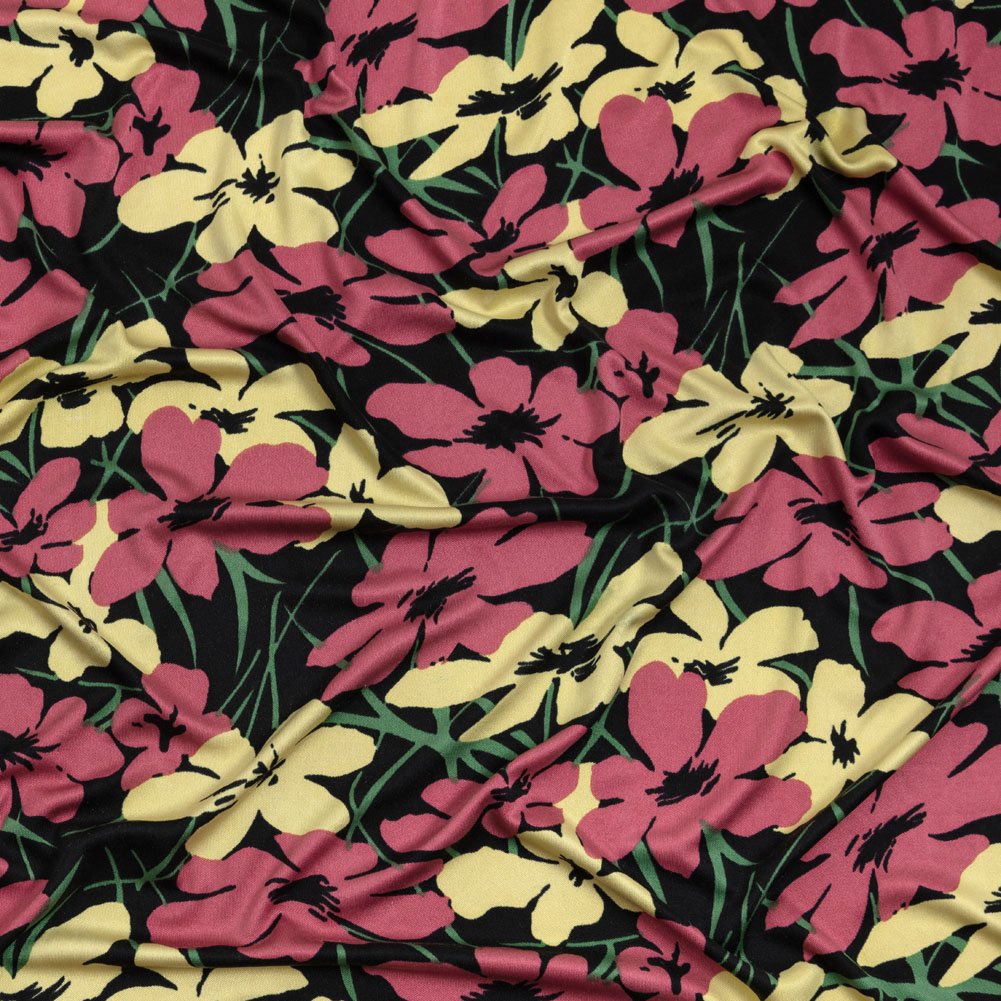 Black, Dark Rose and Yellow Floral Silk Jersey