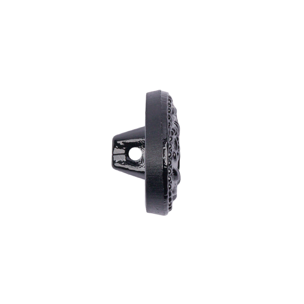 Black Floral Leaf Glass Shank Back Button - 28L/18mm