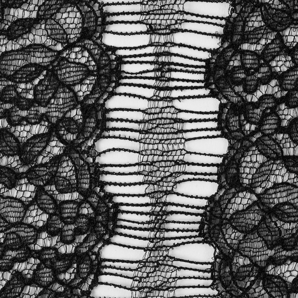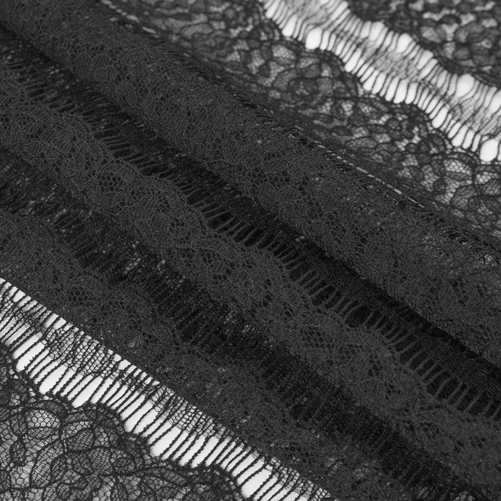 Black Floral Striped Lace w/ Scalloped Eyelash Edges