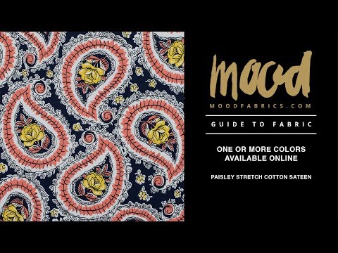 With an adorable hand drawn design, take home this Paisley Stretch Cotton Sateen. Floral vines surround a paisley print over this sateen. With its crisp hand and stretch through its weft, create tapered pants that flex when you do. This cotton falls nicely for peplums, but may be better suited for tailored pieces such as crop tops and shift dresses. Thin and of a medium weight, it is completely opaque and may not need a lining.