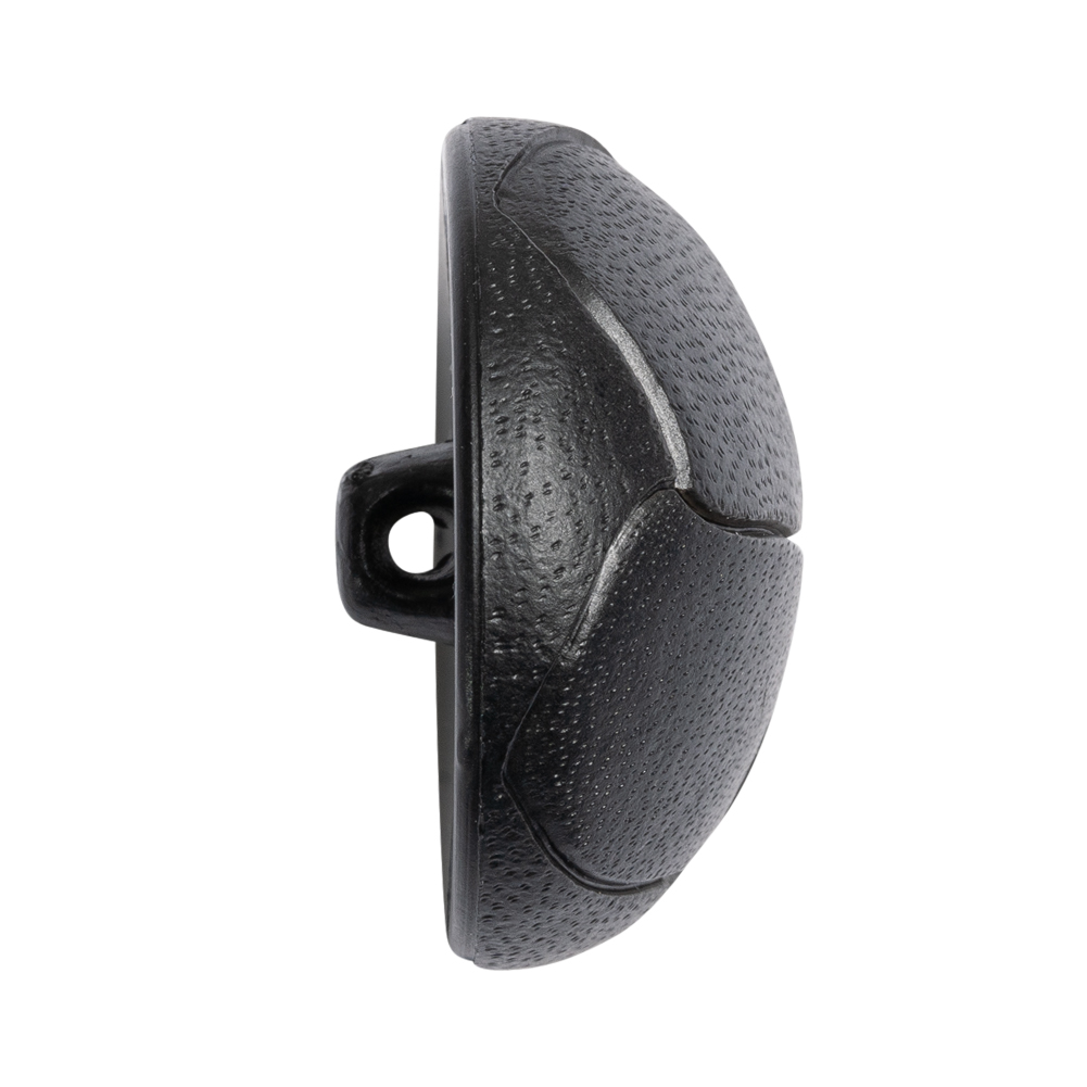 Mood carries an expansive array of plastic buttons in all shapes, sizes, and colors! Here, in particular, we have this Black Leather-Look Knot Etched Domed Plastic Shank-Back Button featuring a large dome-shaped face, knotted to mimic the look of leather.