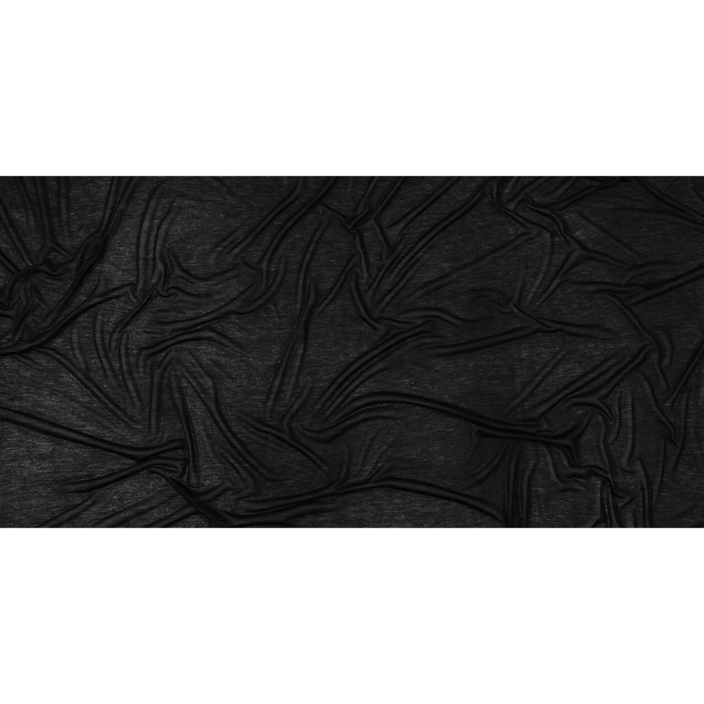 Enjoy cozy couture and brilliant basics with this Black Lightweight Rayon Jersey! The soft feel, supple drape, and 30% widthwise stretch lend themselves easily to T-shirts, tank tops, wrap dresses, and more. With a basic black colorway, the fashionable possibilities are truly endless! Highly translucent, consider a self-lining or layering this material to increase opacity.