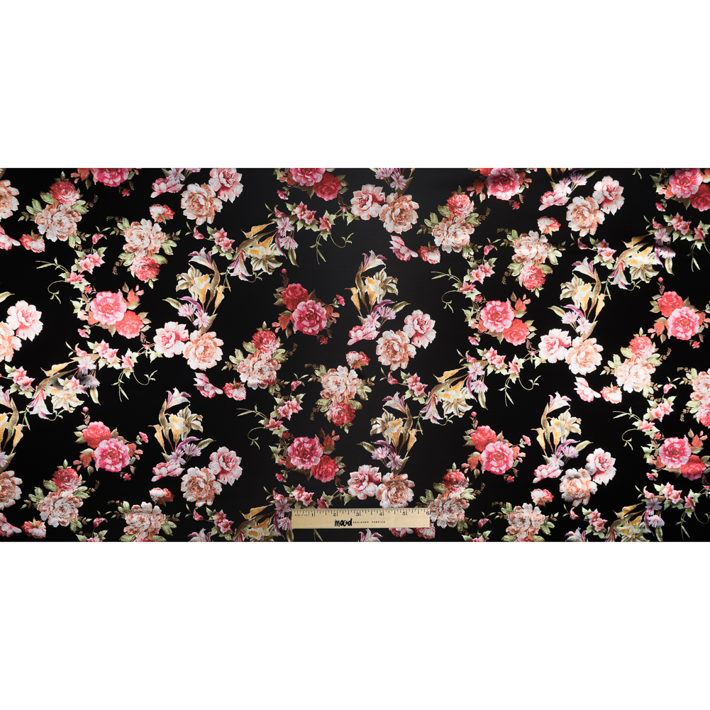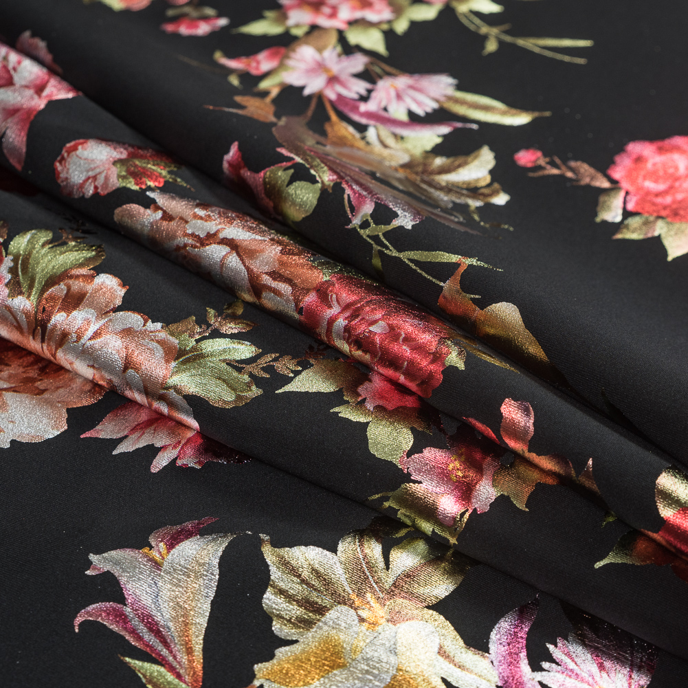 Jaws are bound to drop upon seeing this Black Ponte Knit featuring a Multicolor Floral Foil Design.