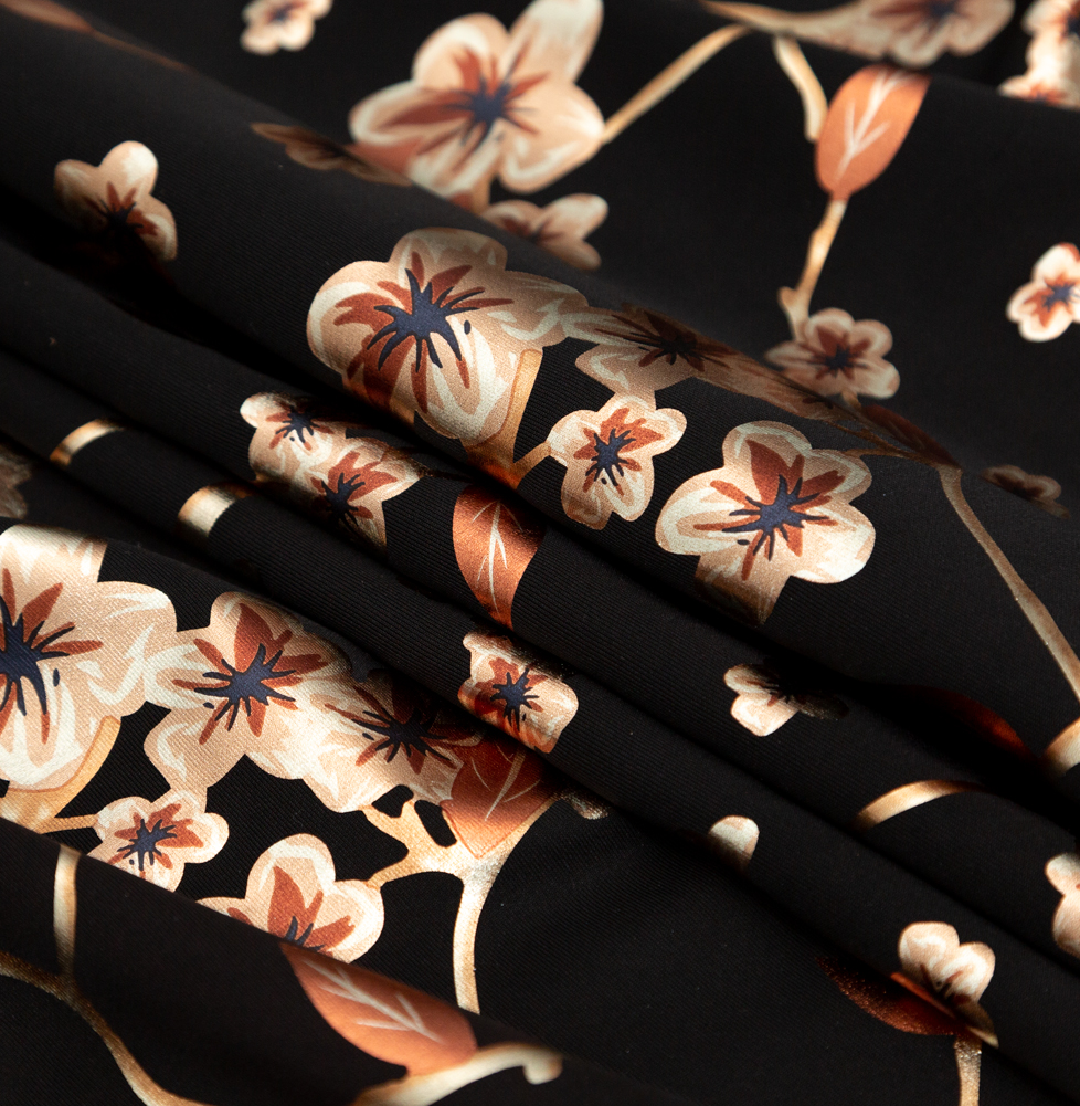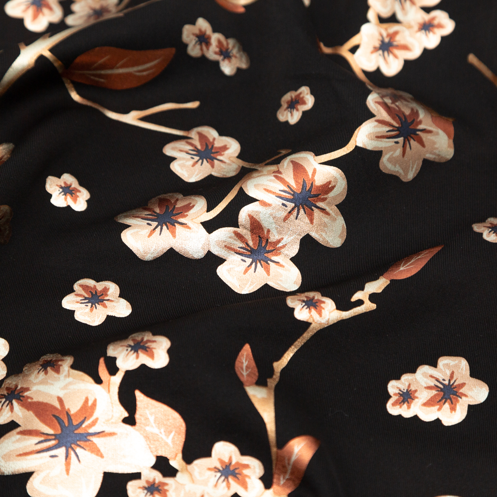 Black Ponte Knit with Rust Floral Foil Design
