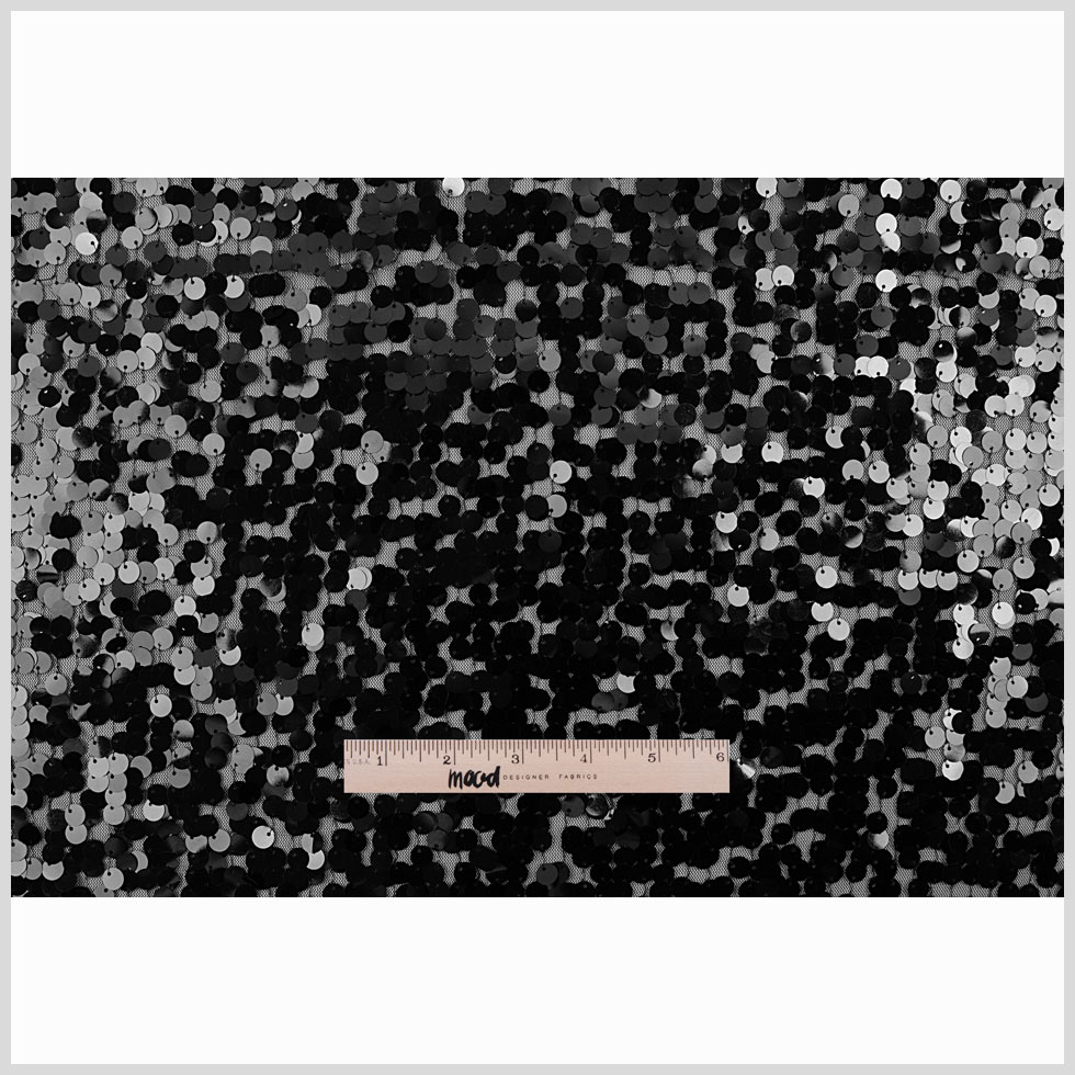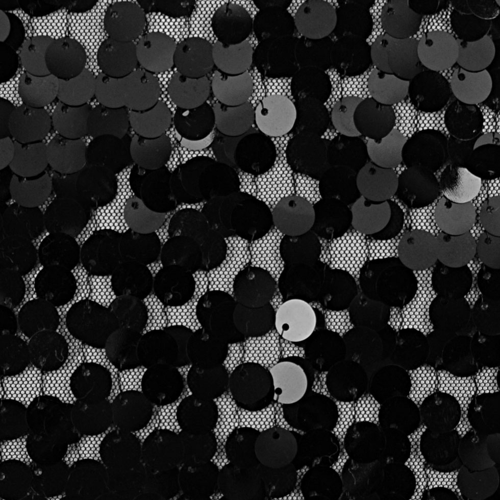 Go for glamour with this fabric. Little round black paillettes are stitched to black knit mesh. There's ample stretch to make a body-hugging little black dress, skirt or top