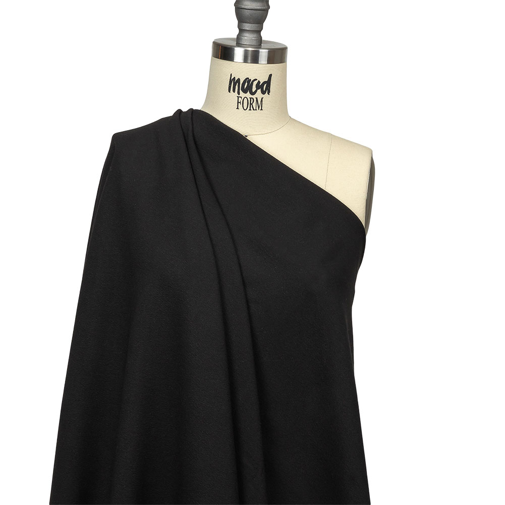 Beyond your boring basics, there you'll find this Black Stretch Polyester Crepe! Much heavier than your typical crepe, this black option features a pebbly texture and 25% widthwise stretch. Due to the polyester fibers, it is ideal for both eveningwear and casual applications alike. Semi-structural and voluminous in drape, try timeless blazers, versatile dresses, or circle skirts. Opaque, a lining is not necessary for most projects.
