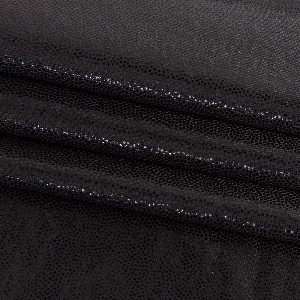 Slide into this sleek Black Tiny Dots Foiled Stretch Polyester Jersey for your next night out! Light bounces off of the black dots, covering the black jersey, like moonlight shining on wet grains of sand.