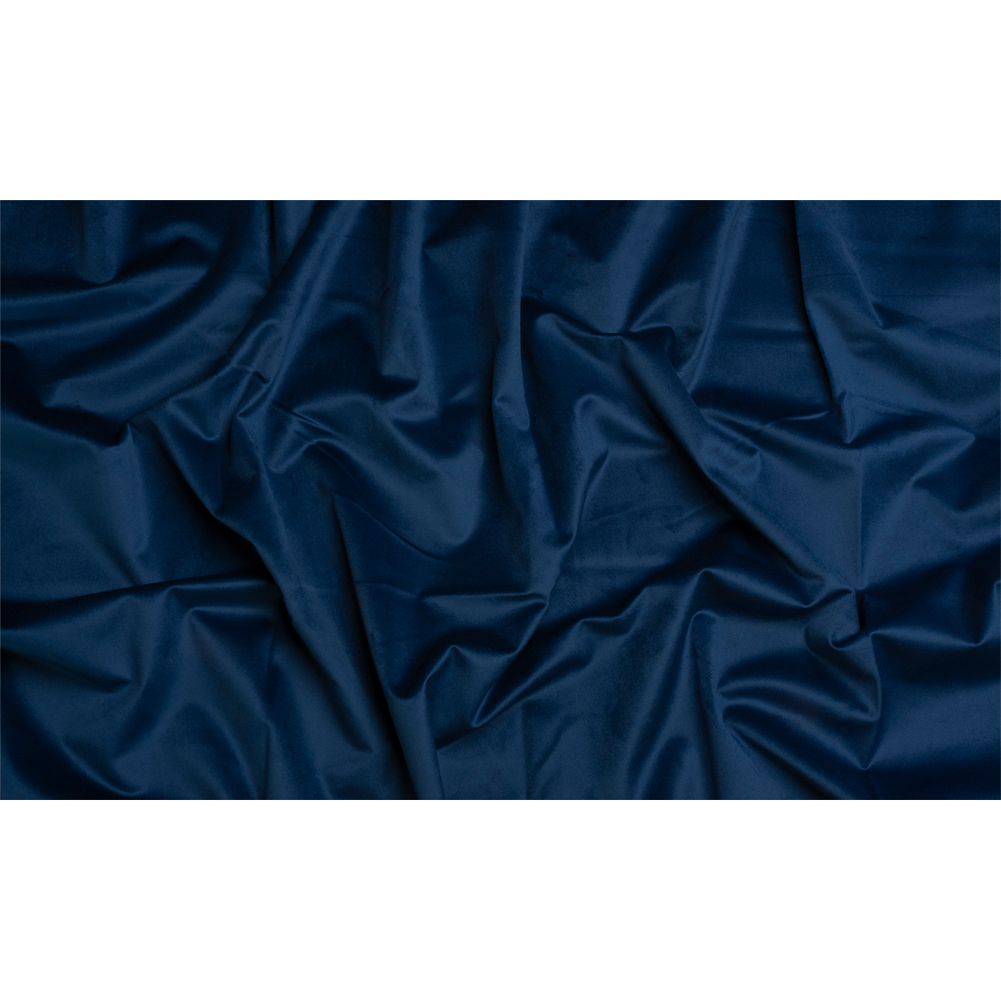 Bring a rich color and texture into your home with this Eldon Navy Blackout Polyester Drapery Velvet! For the light sleepers, night shift workers, pitch-black demanders, and afternoon nappers, this navy fabric keeps out the sun and acts as an extra layer of insulation from its hot rays. With a lustrous velvet face and a semi-fuzzy, completely opaque light blue back, you can have luxurious curtains without sacrificing practicality. Dense enough to combat the sun, the surprisingly malleable drape is perfect for long, pooling curtains or shorter panels. Due to the nature of this heavy-weight fabric, a lining is not necessary.