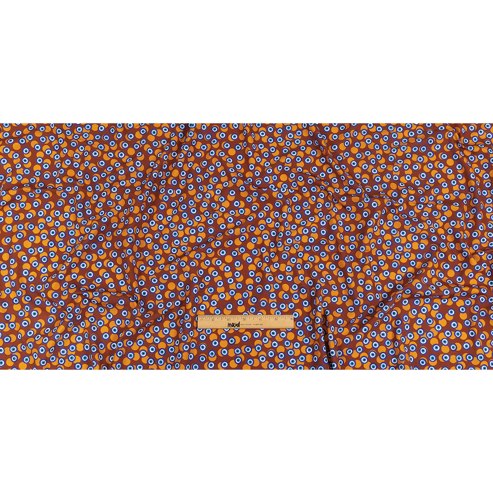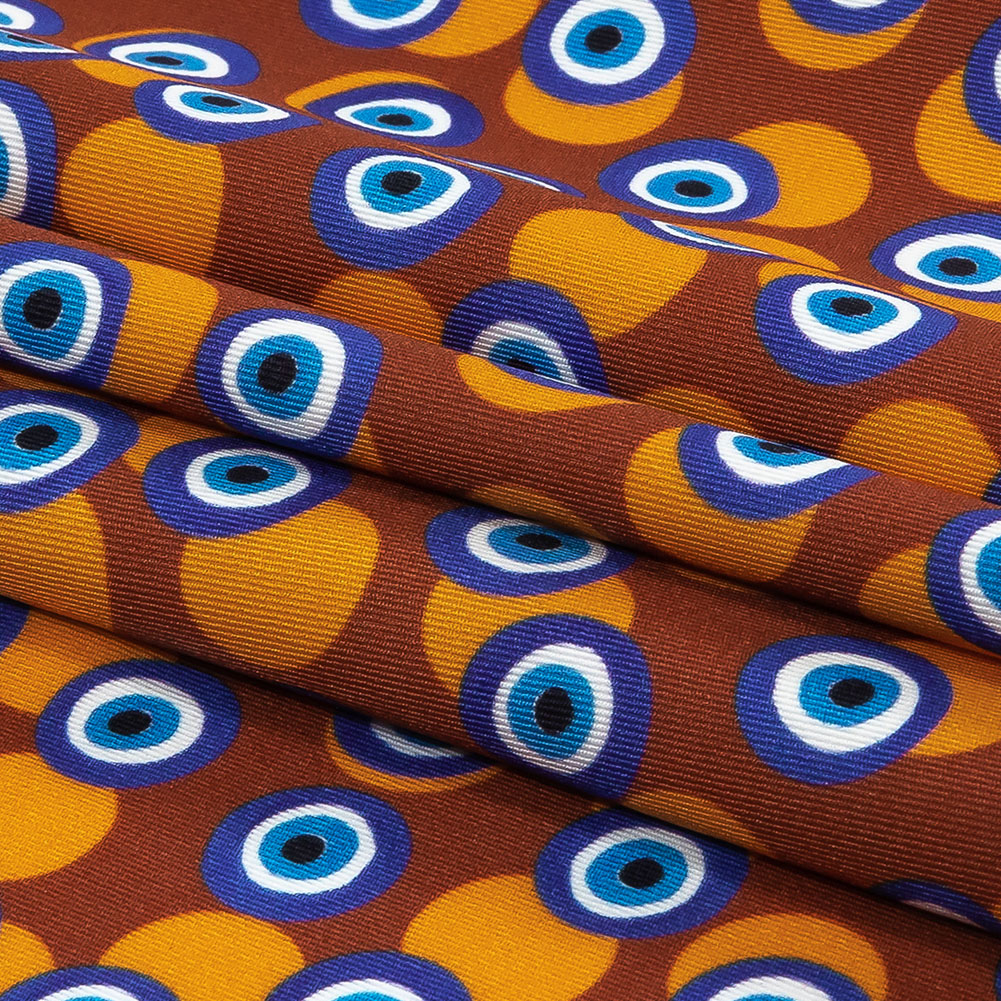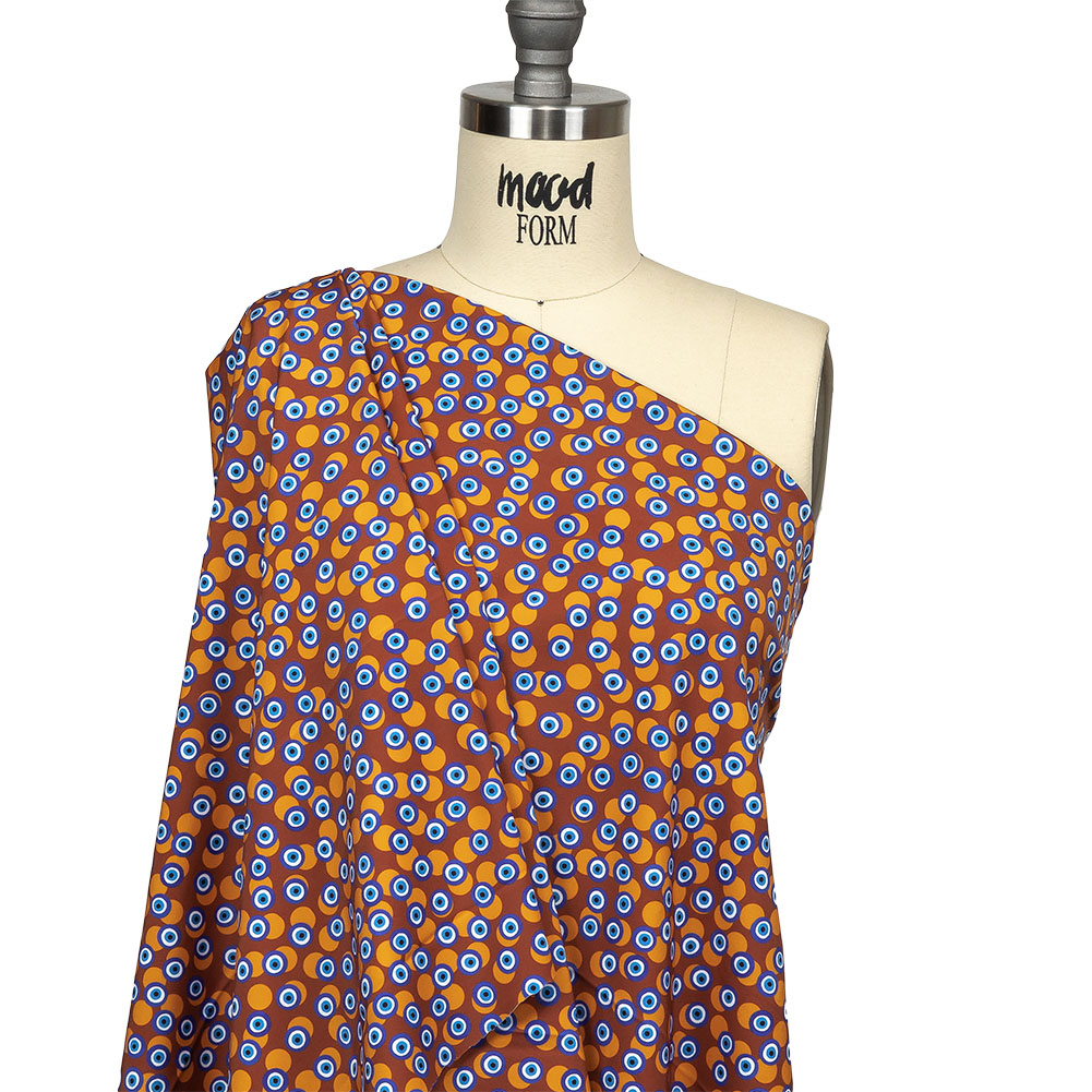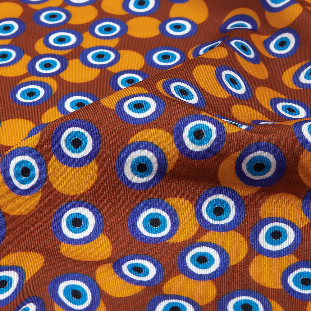 Our Blue and Brown Bouncing Evil Eye UV Protective Compression Swimwear Tricot with Aloe Vera Microcapsules is made for movement, whether you're swimming or enjoying a pool party! Blue and white evil eyes bounce amongst brown and orange dots for a playful, yet elegant design. Composed with a combination of polyester super microfibers and lycra, here is a Max-Dri performance tricot providing a phenomenal 4-way stretch along with superb retention capabilities. Not only is this tricot supreme for articles of activewear such as leggings and shorts due to its high compression fabric structure improving athletic performance, but it is also a brilliant option for bathing suits as it comes complete with 50+ UV protection and Aloe Vera Microcapsules for skin hydration. Also, keep in mind that this material undergoes Antibacterial treatment which prevents stains and accruing bad odor. Note: Do not machine wash, tumble dry, iron, bleach, or dry clean this material. Hand washing is recommended. This material weighs 290gsm.