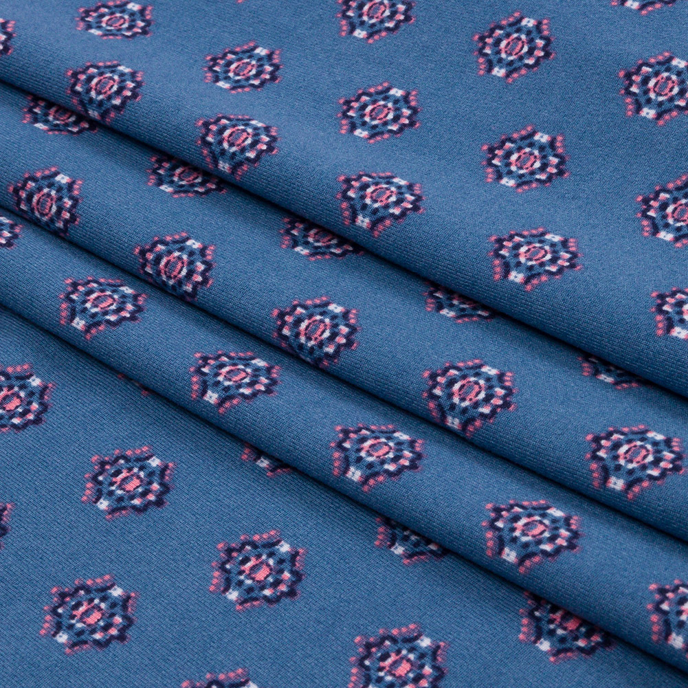 Blue and Pink LIttle Medallions Stretch Polyester ITY Knit