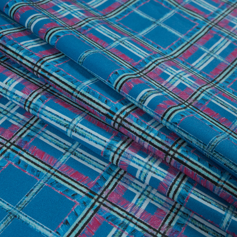 A fun look for preppy aesthetics, don’t miss this Plaid Printed Stretch Cotton Sateen! Scribbled in pink and blue, a classic plaid print covers this crisp cotton woven in impeccable style.