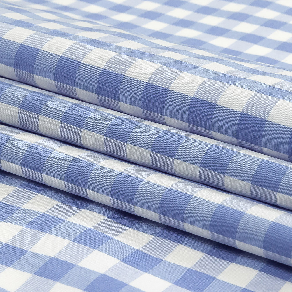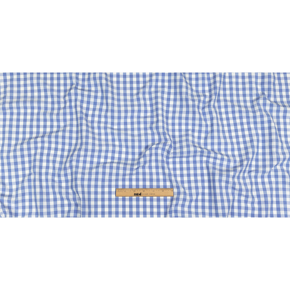 For your next picnic date, why not embody summer romance by wearing our Blue and White Checked Cotton and Polyester Shirting?! A large dusk blue and white check is paired with a subtle sheen, thanks to the cotton-polyester blend. Crisp and swishy in hand with a satisfyingly lightweight feel, peasant blouses and vintage-inspired day dresses are just as feasible as summer-weight shirtings and crop tops. Translucent, a lining is not required for shirting applications but can be added when full opacity is desired.