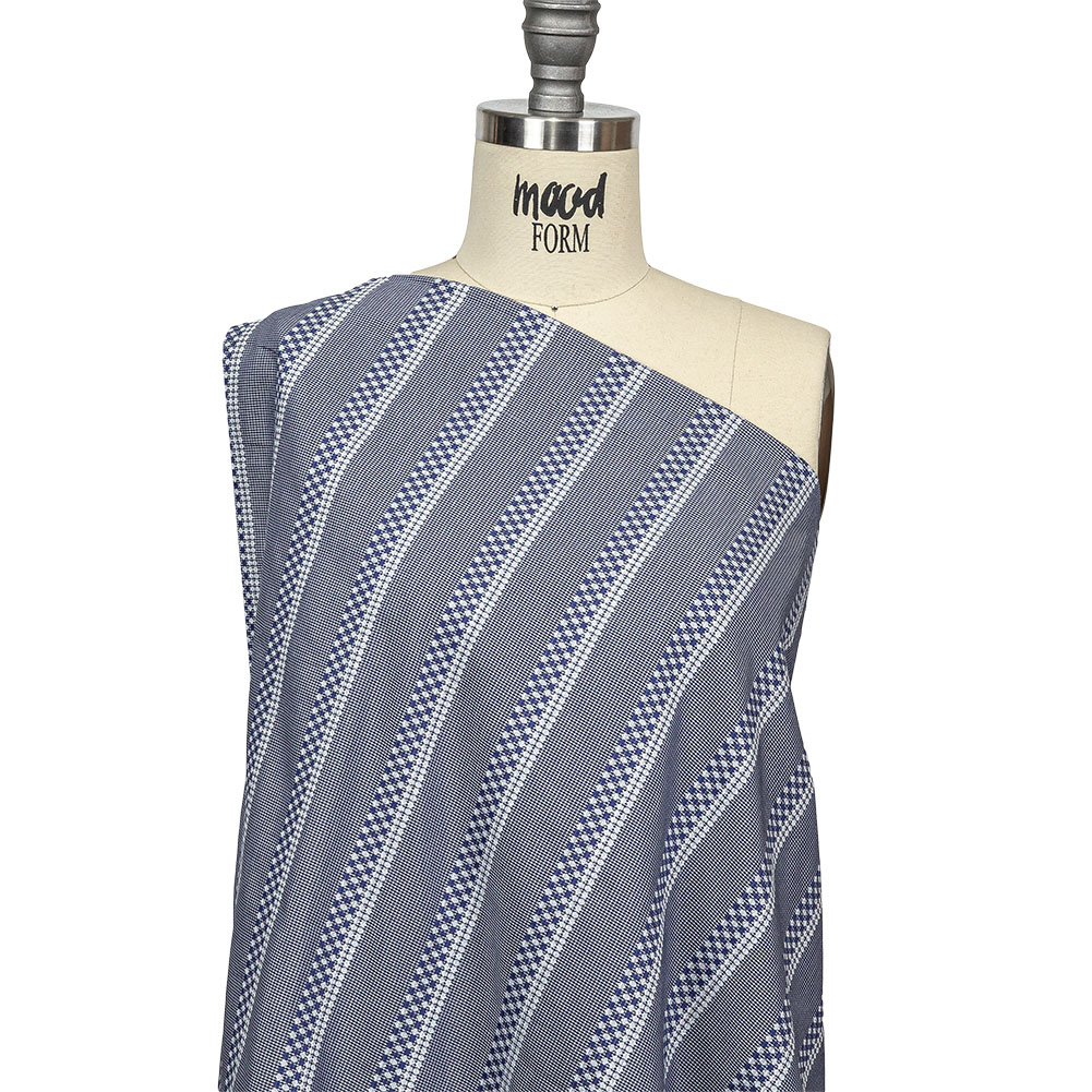 Blue and White Diamond Stripes and Checks Cotton Jacquard