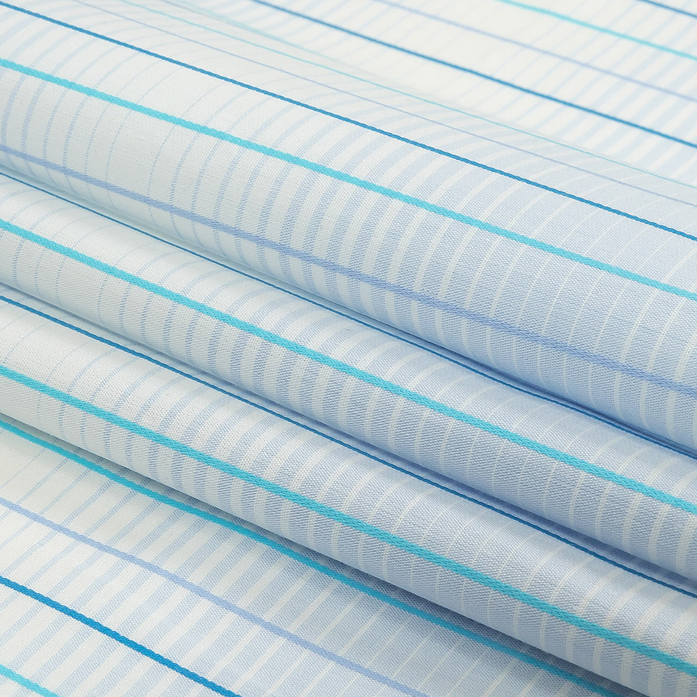 Blue, Aqua and White Gradient Pinstripes Cotton Shirting