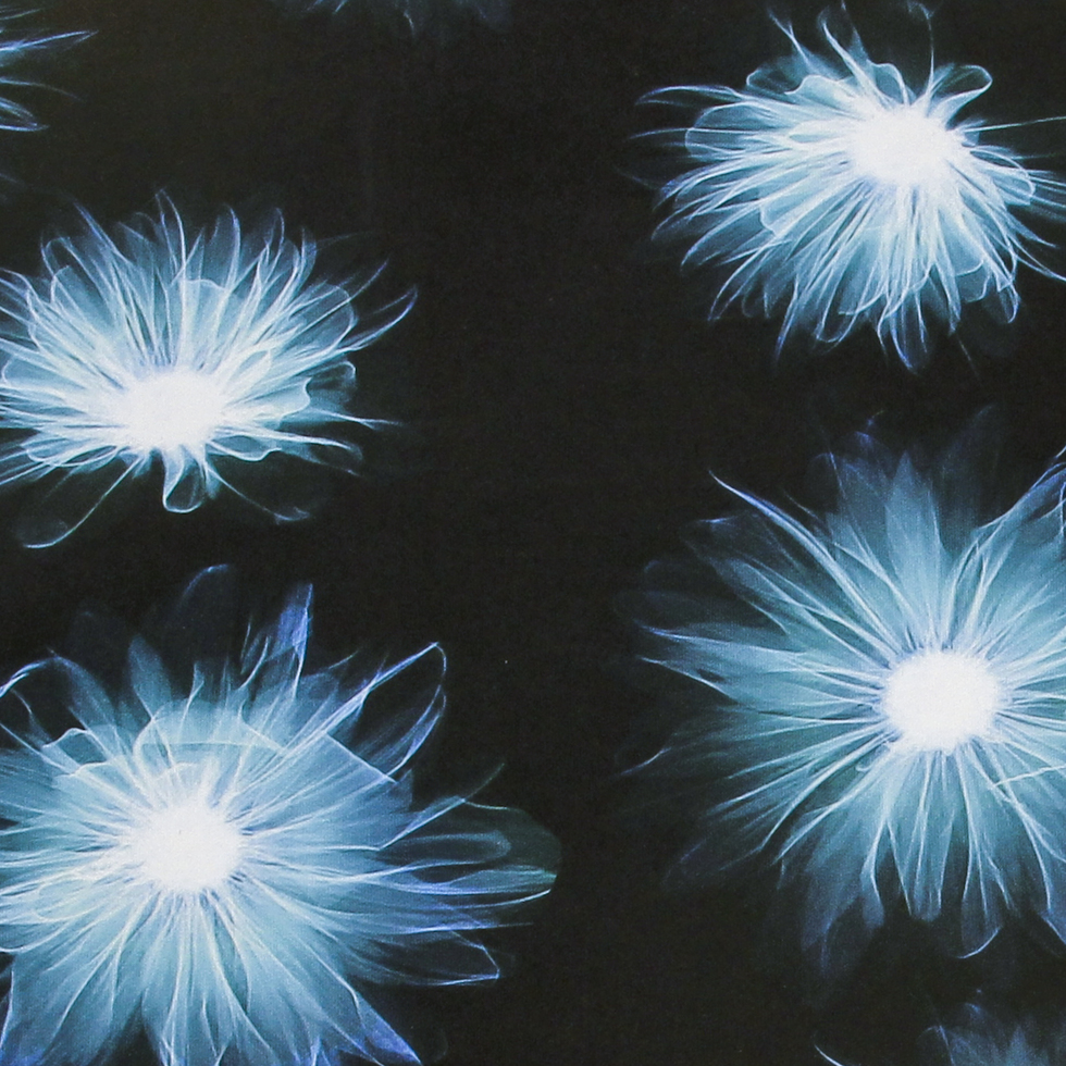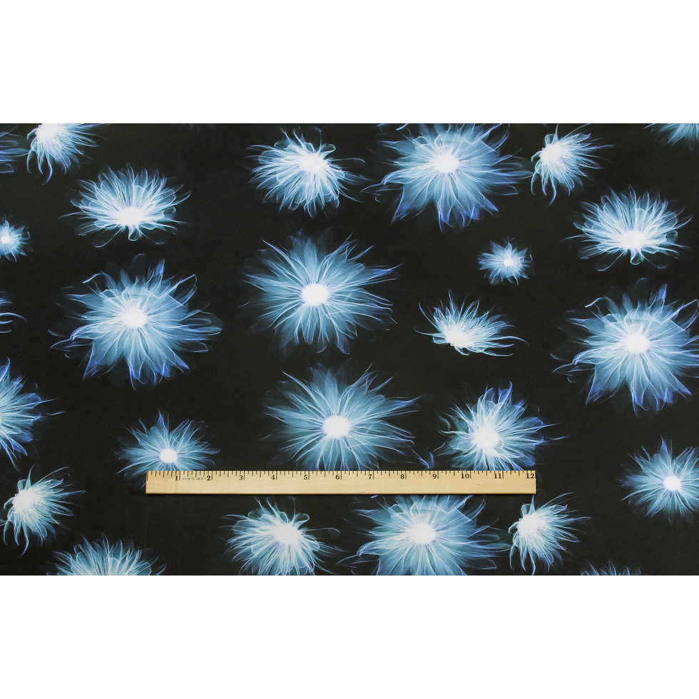 Blue/Black X-Ray Floral Digitally Printed Stretch Neoprene/Scuba Knit