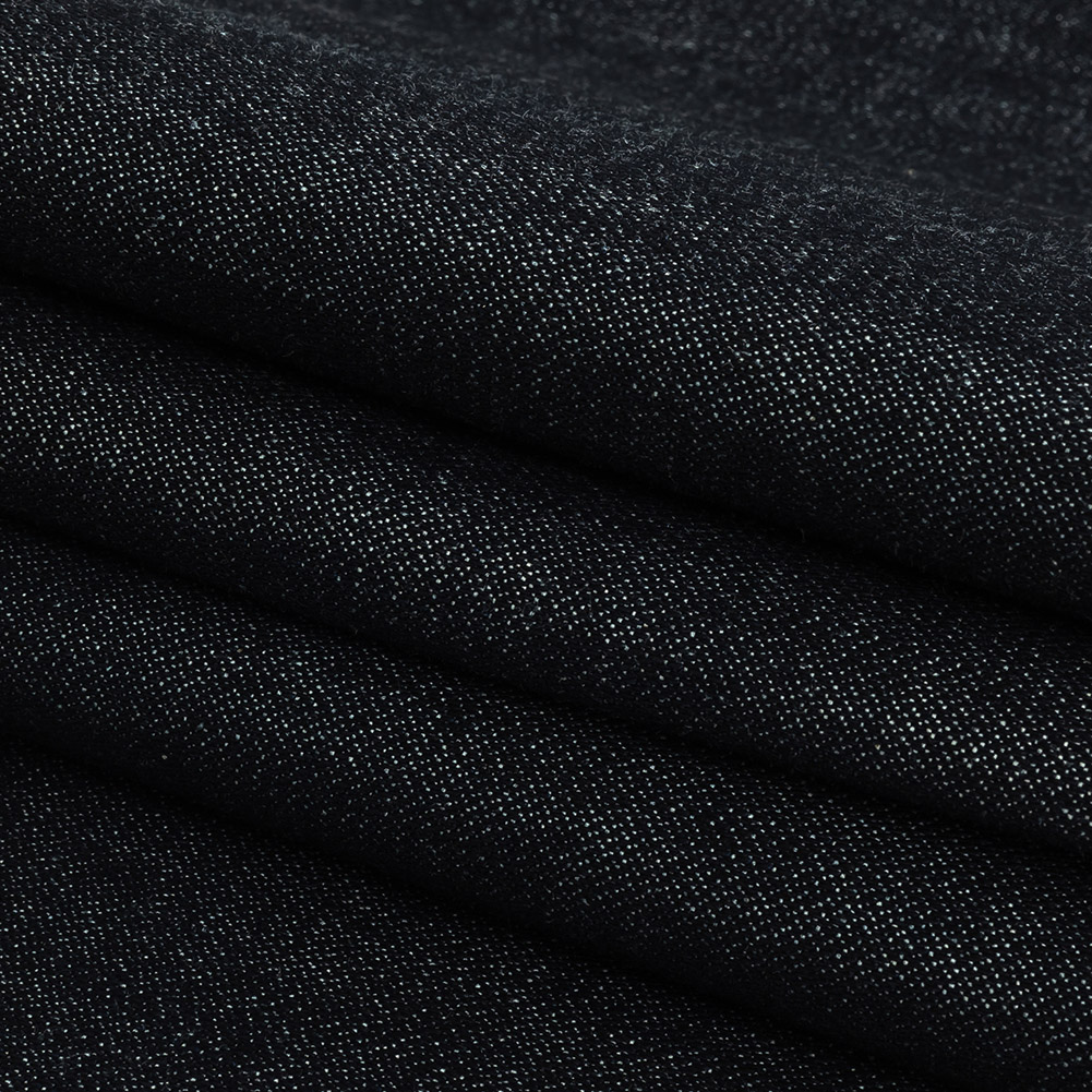 Let the deep indigo hues of this Blue Graphite Cotton Denim draw you in! Dark blue, almost black on the face, this denim is composed of a colored warp and white weft, so that the reverse is much lighter. With a fairly stiff drape and crisp hand, create work jeans that stand up to the dirtiest jobs, aprons to keep yourself neat, or tote bags that hold all your stuff while looking fabulous! Opaque, a lining isn't necessary for most projects. Keep the long history of American denim alive—this fabric is made in the USA! Please Note: Pre-washing this fabric by itself before you start sewing is highly recommended, as the color may bleed extensively upon its first few washes, and in some cases, the color may fade.